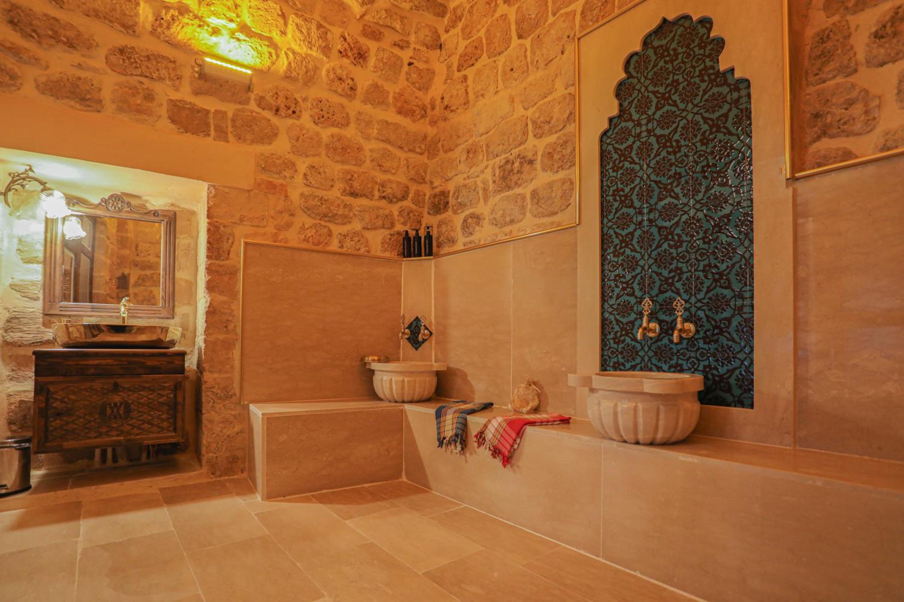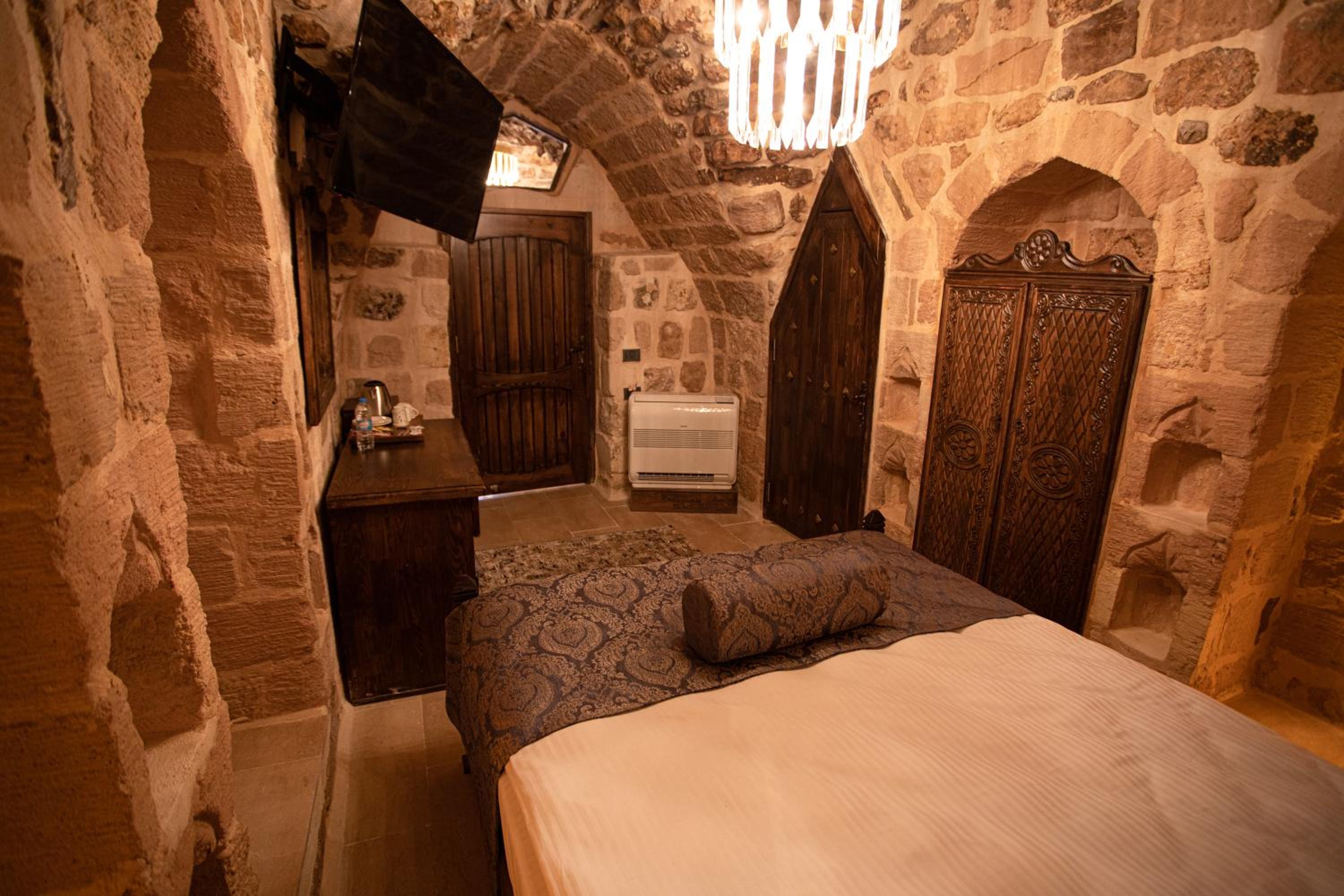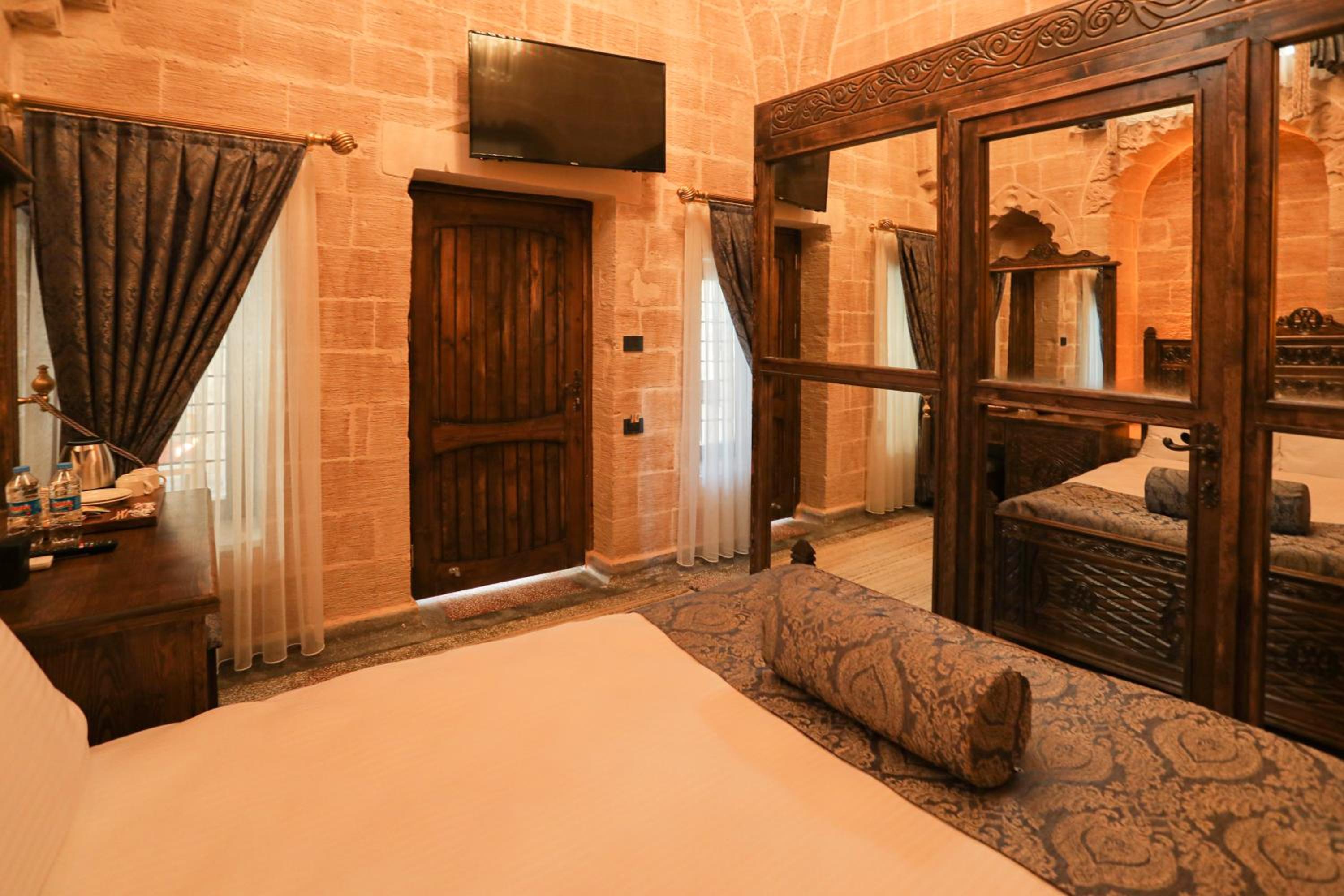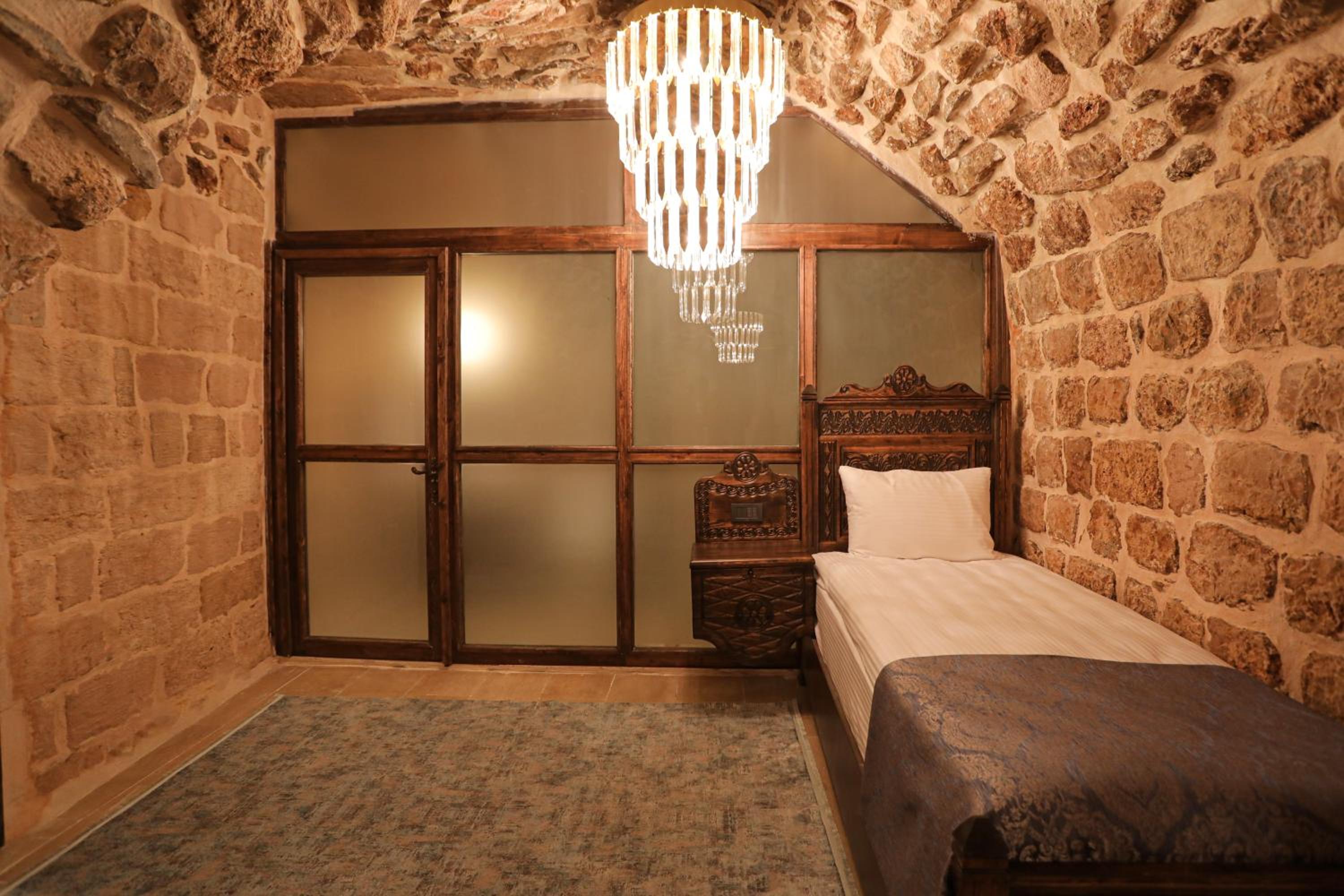 Очень красивый, чистый отель! Всё работает, тепло, уютно. Номер красивый и удобного размера. Есть кондиционер, чайник, холодильник. Завтрак в турецком стиле : яичница +сыр+тарелочки с оливками, сладким, фрукты. Чай горячий, вода, кофе растворимый круглосуточно в зоне ресепшен. Красивый вид с террасы. Рядом есть кафе для вечерних посиделок. Персонал - отличный! По крайней мере один сотрудник говорит по-английски, что очень облегчает жизнь и взаимодействие. Очень приветливый и общительный. По приезду он тут же предложил экскурсию вокруг Мардина, все удачно сложилось. Он же помог с багажом при выезде. Спасибо ему большое!