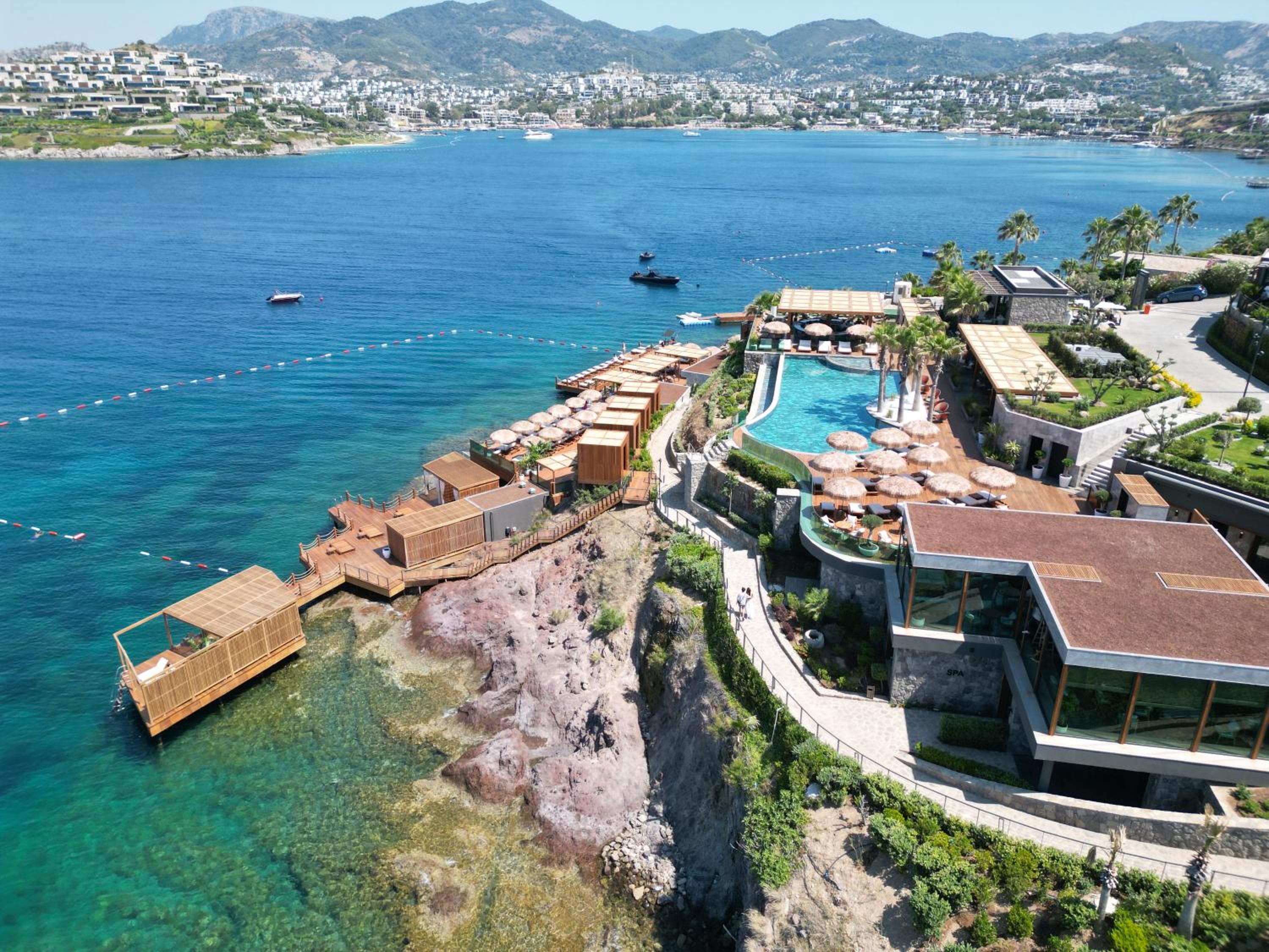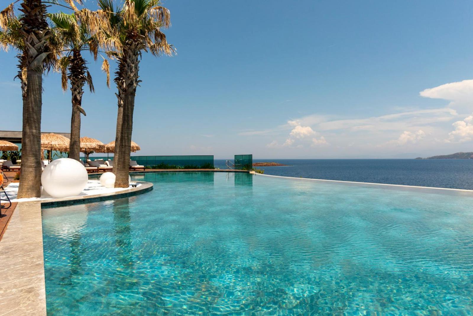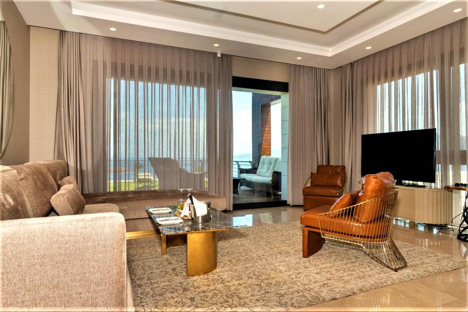 The property was very beautiful, the rooms kept clean throughout the living room by room service, with a breathtaking view. Direct access to the sea with an infinity pool, nothing to complain about. Many thanks to Sinan and I hope to come back soon.