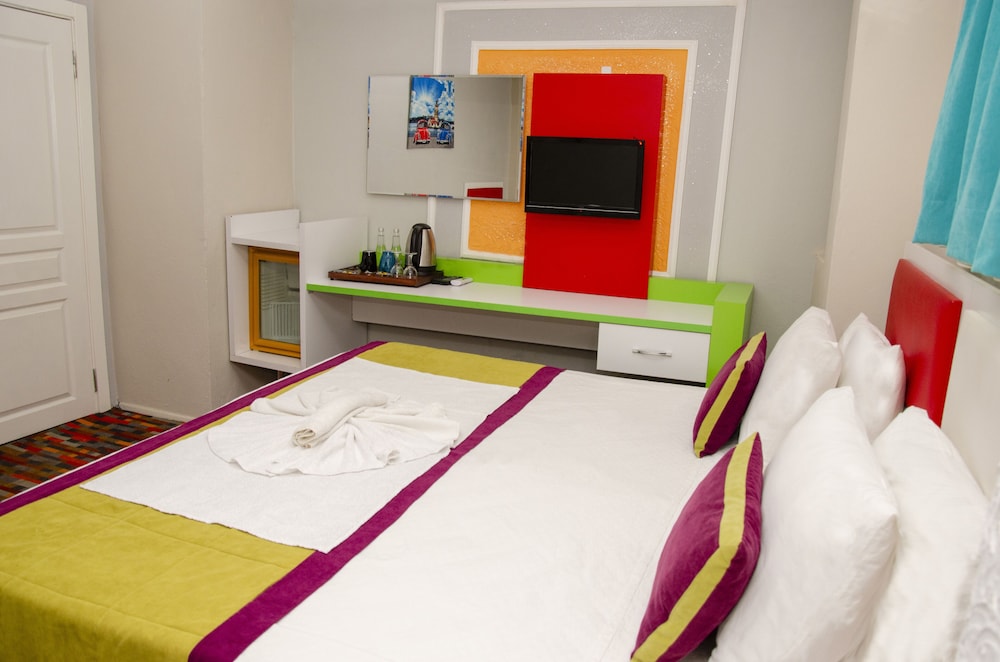 kaldığımız oda küçüktü ana caddeyi görüyordu otelin otoparkı yoktu üçüncü katta kaldık ve asansör yoktu oda genel anlamda temiz görünüyordu biz iki kişi kalmış olmamıza rağmen odaya bir tane banyo bir tane baş havlusu koyulmuştu duşa kabini yarım kapalı (tek bir tarafında cam var diğer tarafı açık) şekilde ve aşırı dardı ayrıca duş başlığı asılmıyordu elinizle tutmanız gerekiyordu yatak çok rahattı odada klima bulunuyordu fakat buzdolabı yoktu ve televizyon çalışmıyordu ayrıca odada perde yok sadece tül vardı.