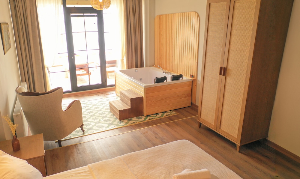 The hotel itself is a 5 all day. Not sure why all the pics have a fireplace and the room doesnt have it, but its summer so no big deal. Nice clean room with fancy jacuzzi. Even had headrests and changing colors etc. Nice bathroom. Bed a bit small but pretty comfy. Outdoor lounging area with privacy screen. All of it was good really. The bad is that the food wasnt great. Some was ok. Some was just bad. And service was polite and kind, but just not professional. Things came out at random times and forgotten items. Ive read its typical in the area at all the hotels though. Im not upset about it. Just saying it could certainly be better. The worst part is just how far from the main area is. The port area has every imaginable store. But where the hotel is has very limited access. They do have a boat right from the port thats free. They say it comes every 20 minutes just its just inconsistent and you have to wait and hop on quick before they sail away. And the other option is a bus. You need a card and theres a BIM you can go to at the port. In the backroom they sell cards for 50TL and then you load with cash from there. Rides are 33.93TL so load up when youre there. And the island doesnt seem to rent any electric scooters/bikes which is crazy. Walking up many steep hills is hard in the heat. And a bike would be even harder to do. Many steep hills. So the location is very challenging and there wasnt specific guidance i just figured it out as i went. But the hotel itself is great.