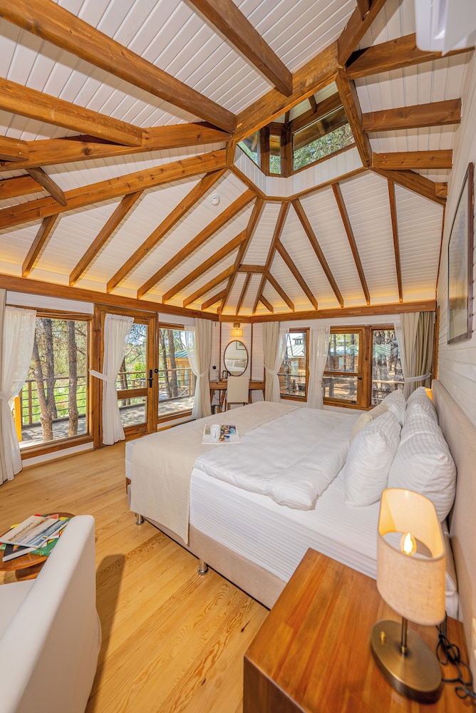Otele girişimizden çıkışımıza kadar bizi özel hissettiren tüm otel personeline teşekkürler. Doğanın içinde, şehre yakın huzur dolu bir otel. Kahvaltı gayet yeterli. temizlik ve konfor için herşey düşünülmüş. Evimizin rahatlığında ve konforunda 3 gece geçirdik. ihtiyacınız olabilecek herşey düşünülmüş. Biz ağaç evlerde 3 kişi kaldık. odaların büyüklüğü çok ideal. 3. yatak kanpet olarak verildiği için rahat değildi ama bunu dile getirdiğimizde bize hemen çözüm buldular. Müsaitlik olduğu için bize ilave Oda tahsis ettiler. Bu gerçekten çok hoşnutluk yaratan bir yaklaşım oldu. Egemen bey ve Kadir beye ayrıca teşekkür etmek isterim. ilgilileri ve çözüm ve memnuniyet odaklı yaklaşımları için. Bagi hizmetinin 7/24 olması ayrı bir konfordu. Mutlaka bir daha gelmek isteyeceğiniz bir yer olacak.