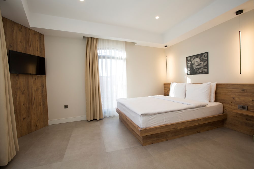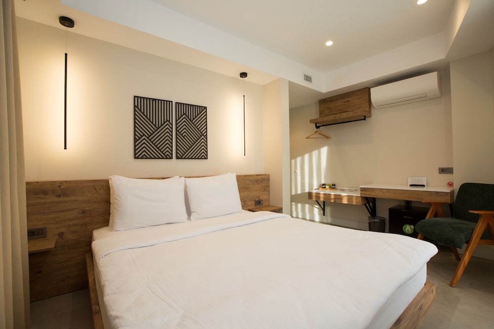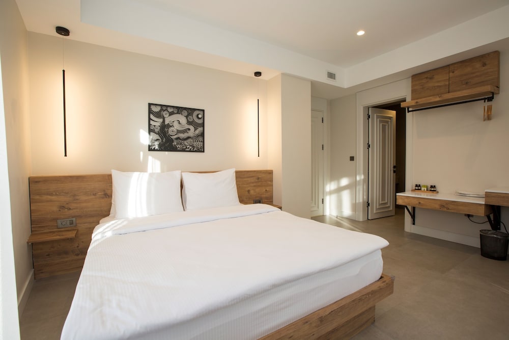 Ozellikle otelin ozel tasarim mimarisi icinizi aciyor , yer olarak cok iyi merkezi konumda . Urla ‘ da buyuk sikinti olan otopark alani bu otel icin sorun degil cunku 500 mt de otopark var . Emre Bey aon derece nazik ve ilgili . Favori otelim oldu diyebilirim.