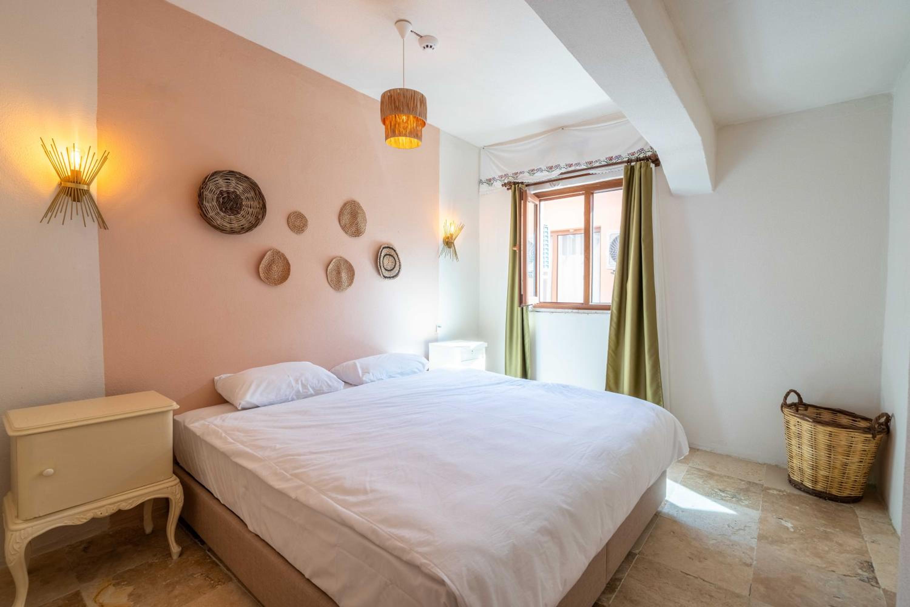 Her sey cok guzeldi. Konumu denizin hemen yaninda cok tatli. Fakat arka taraftaki meyhane ve barlar cok yuksek muzik caldigindan deniz sesi veya huzurlu bir ortam yoktu. Oda genel olarak temiz, iletisimde oldugumuz herkes cok yardimseverdi.