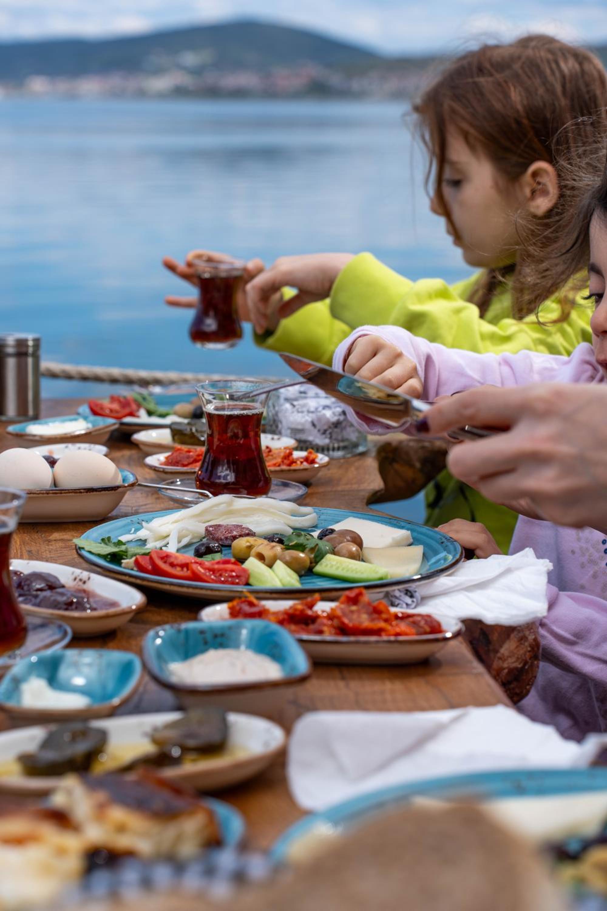 Le petit déjeuner en bord de mer, les chambres très propres et climatisées.