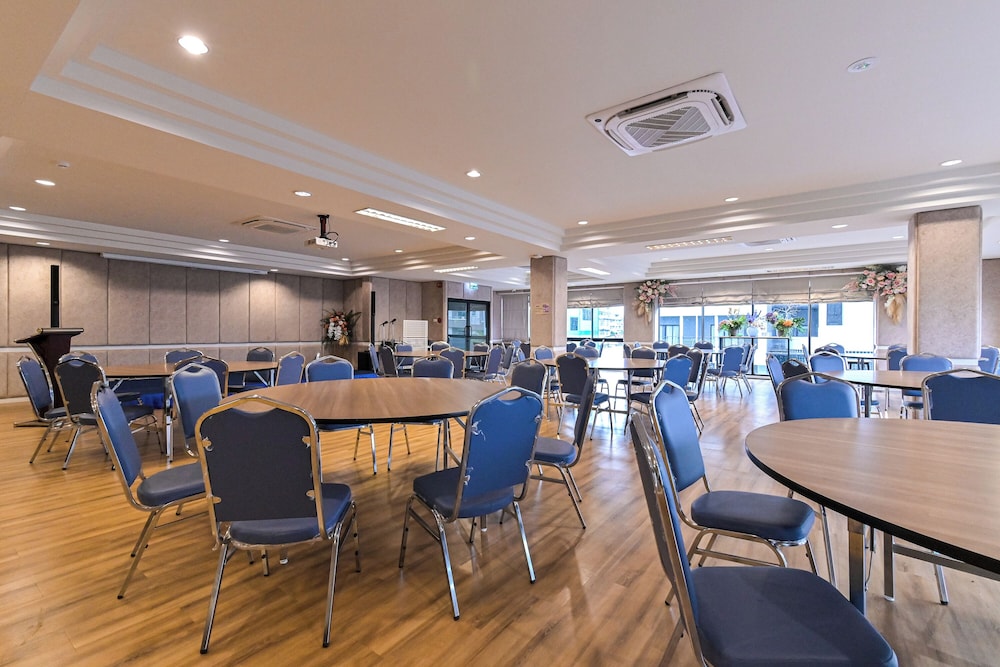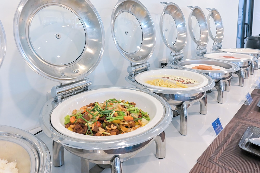 Marvel at the serene garden surroundings while enjoying complimentary wireless internet and access to a banquet hall.