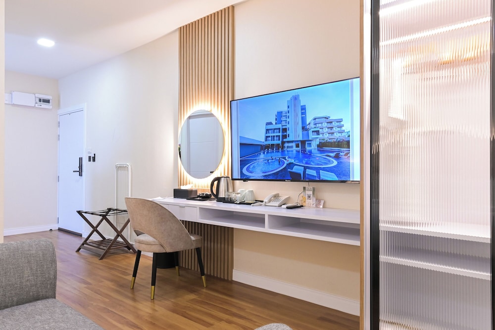 Prisvärt hotell som är nytt och fräscht. Trevlig och hjälpsam personal. Rejält stort rum med kylskåp/pentry.