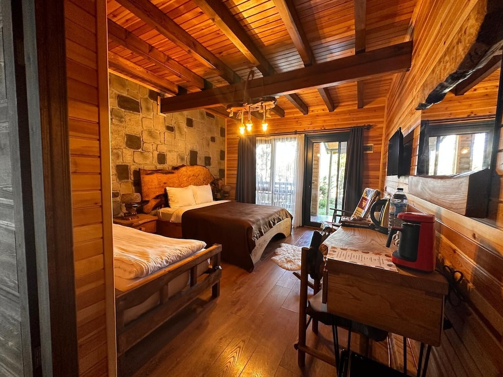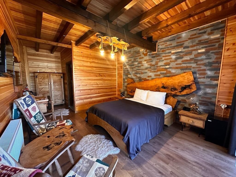 İki katlı ahşap mimari, zevkle döşenmiş odalar. Merkezi ısıtma var. 5 yıldızlı otel seviyesinde bir banyo. Odaya ayakkabılar dışarda bırakılarak giriliyor. Yataklar rahat. Köy kahvaltısı çok zengin ve kaliteli. Personel ilgili ve yardımcı. Yeşillikler içinde.