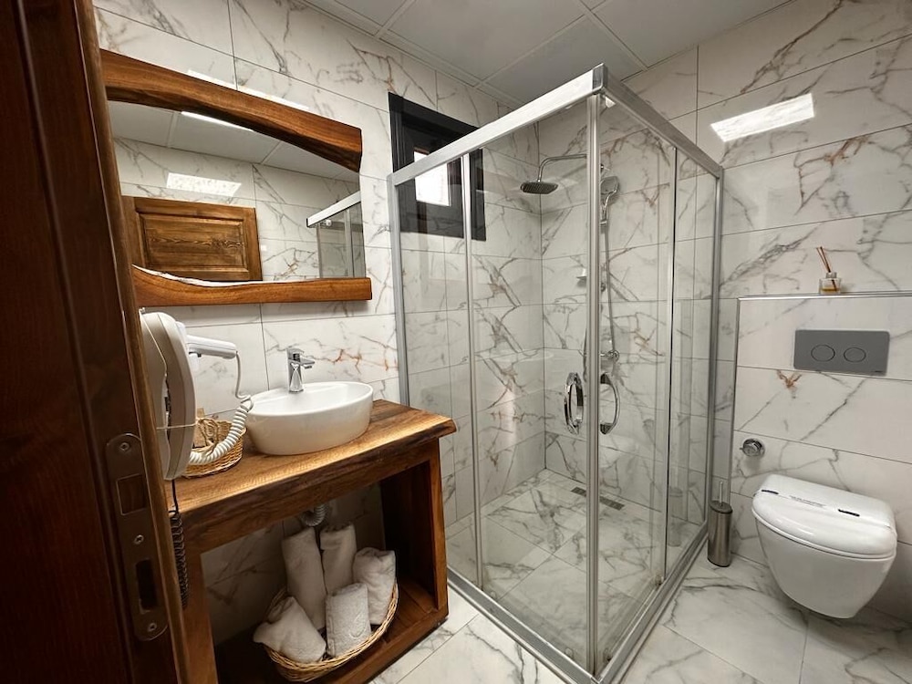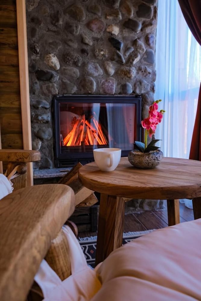 İlk girdiğimiz andan çıkışımıza kadar şahane güler yüzlü bir ekip bizimle ilgilendi. Her birine tek tek ilgileri için teşekkür ederiz. Odalar tertemiz, jakuzi ve tuvalet de aynı şekilde, güvenle kullandık. Uzaktan çalışan biri olarak oda yerine ortak alanda vakit geçirmeyi tercih ettim, çay kahve ve atıştırmalık ikramları için teşekkür ederiz, çok lezzetlilerdi. İnternet erişimi stabil sorunsuz bir şekilde çalışabildim, toplantılara katılabildim. Kahvaltı için diyecek hiçbir şey yok, çeşit çeşit ve taze ürünler, iki İzmirli olarak ilk defa mıhlama yedik ve bayıldık, her kahvaltımızın yıldızıydı. Instagram sayfalarındaki gezi rehberi çok faydalı, gelecek misafirlerin kesinlikle faydalanmasını tavsiye ederim. Lokasyon olarak şahane bir yerde, her sabah ciğerlerimiz temiz havadan bayram etti. Kesinlikle tekrar geleceğiz, şahsen tavsiye ettiğim bir deneyimdir.