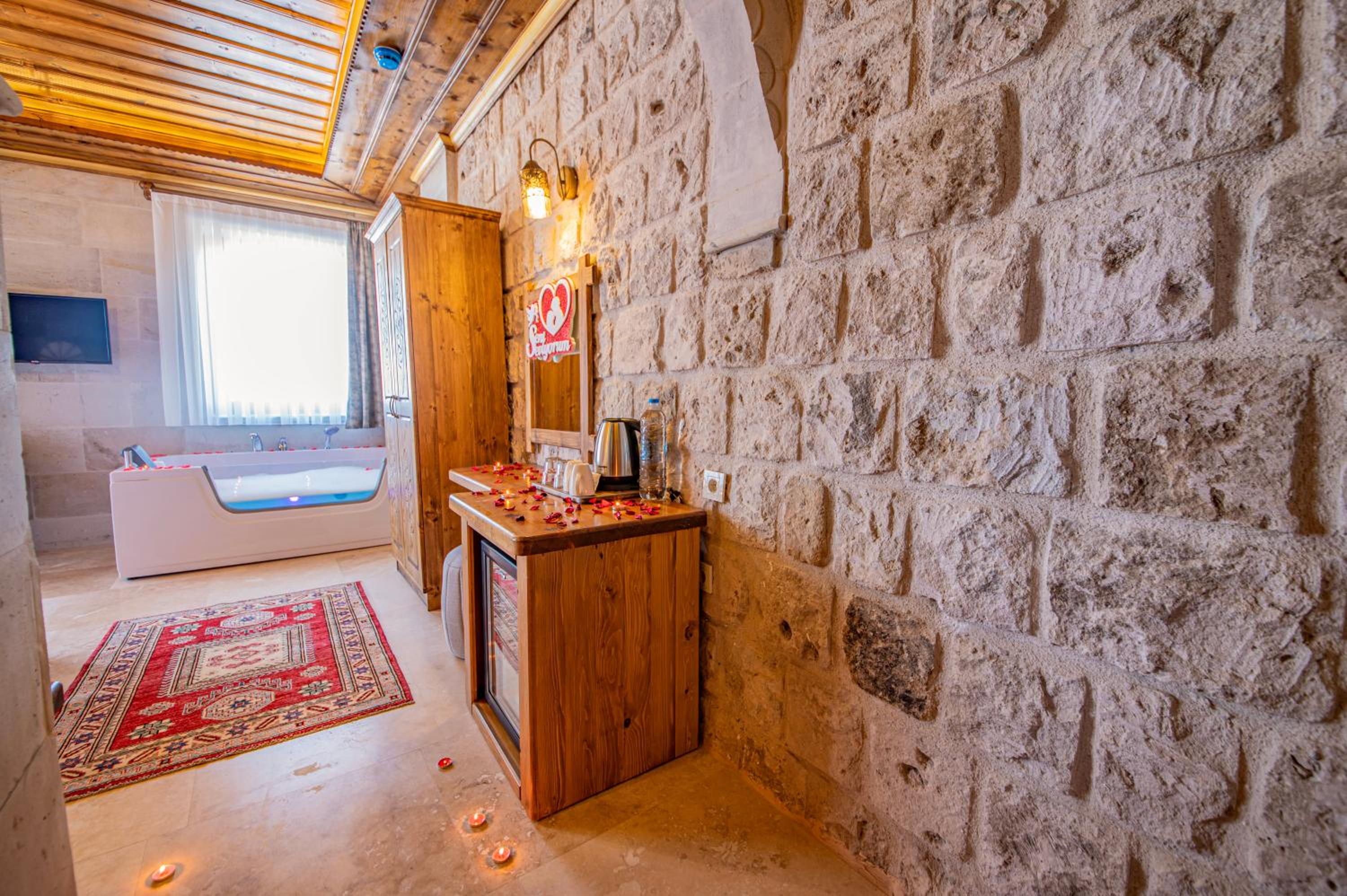Remus Romulus Cappadocia offers elegant guest rooms with modern amenities such as flat-screen TVs, air conditioning, and private bathrooms. Some rooms even feature a charming terrace for a relaxing stay.