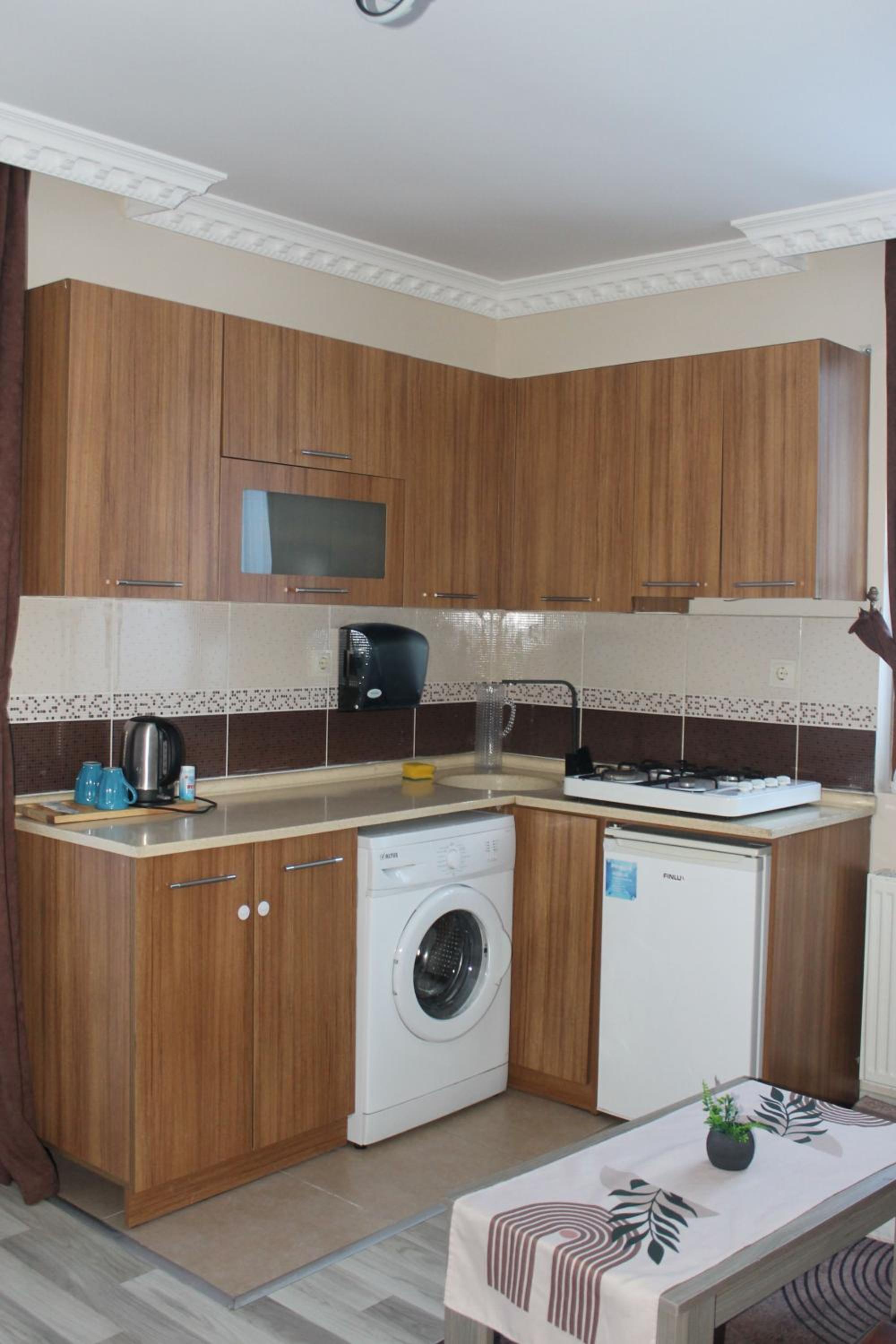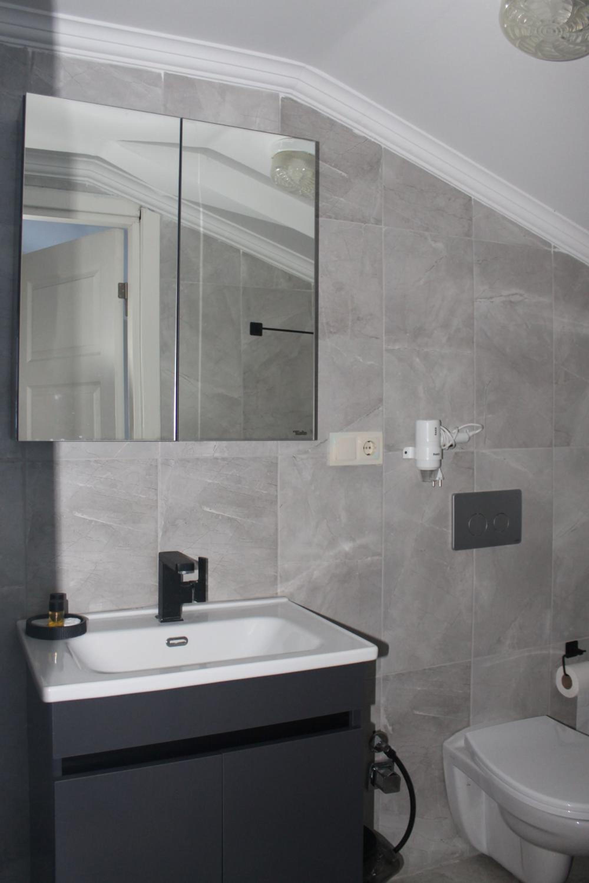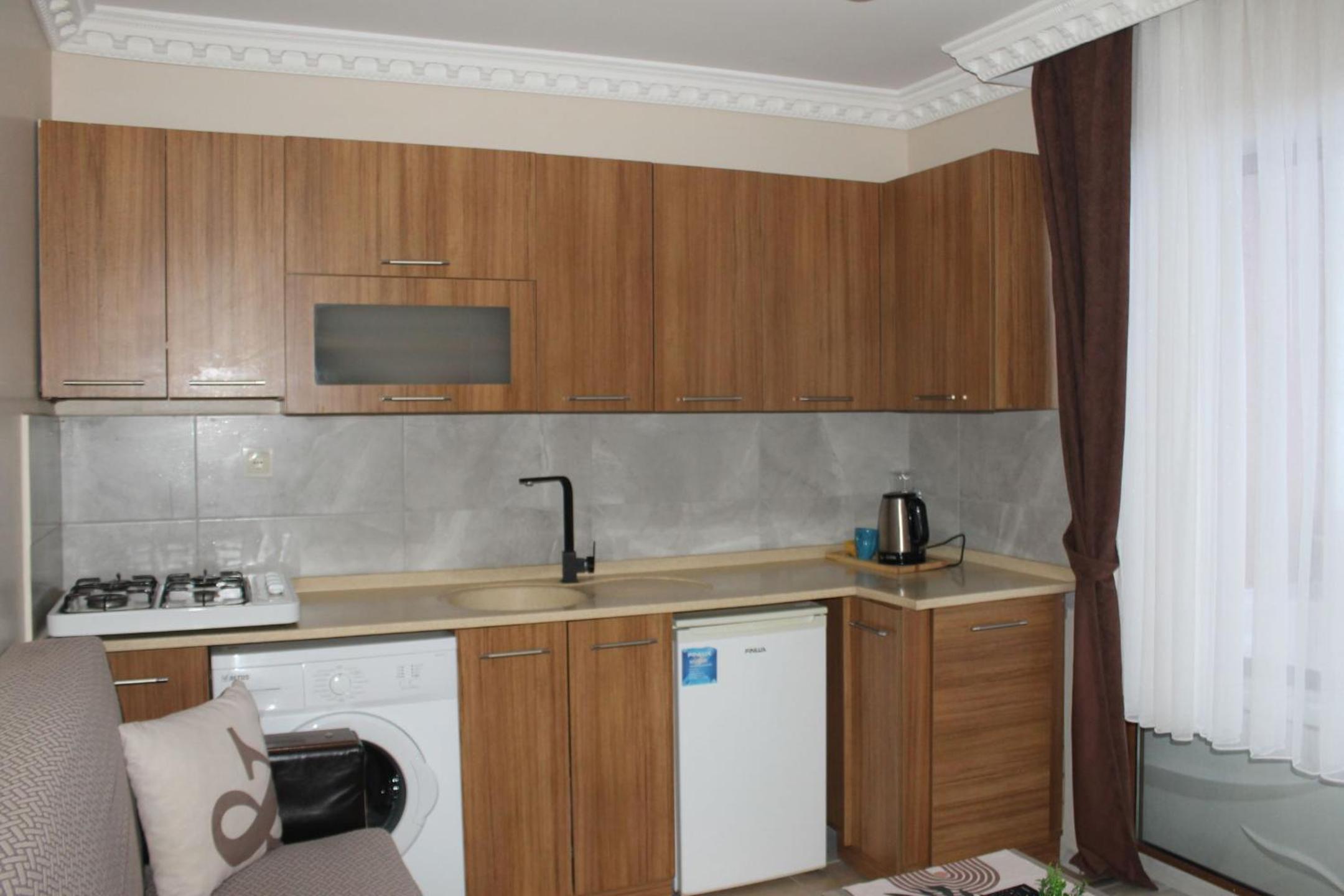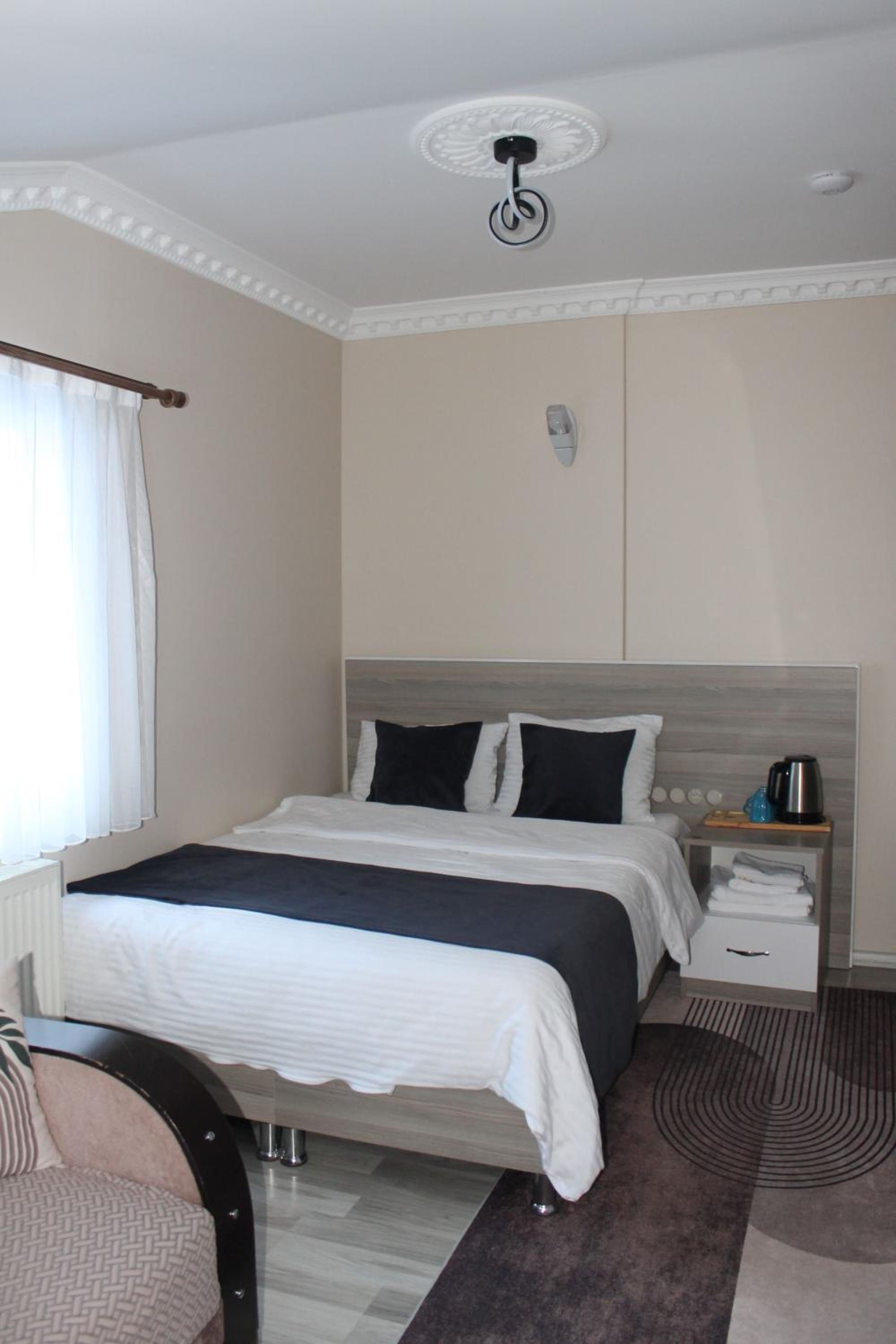 Clean, comfortable bed. Thats it. Was made to feel very unwelcome. No lights for first two flights of stairs then censers on the rest that turned off immediately leaving you in the dark fumbling with keys and luggage. Paper thin walls, could hear the next room flush and showering. Had one missing curtain (told the proprietor but was told no problem no one could see when I told him yes problem, just got a lot of shouting in turkish and nothing done) and a useless blind. The main light switch for the room couldn’t find until later when I found the wall built half way across it. This property was rated 8.6. Really! Next day I checked and down to 6.8. Still to high in my opinion.