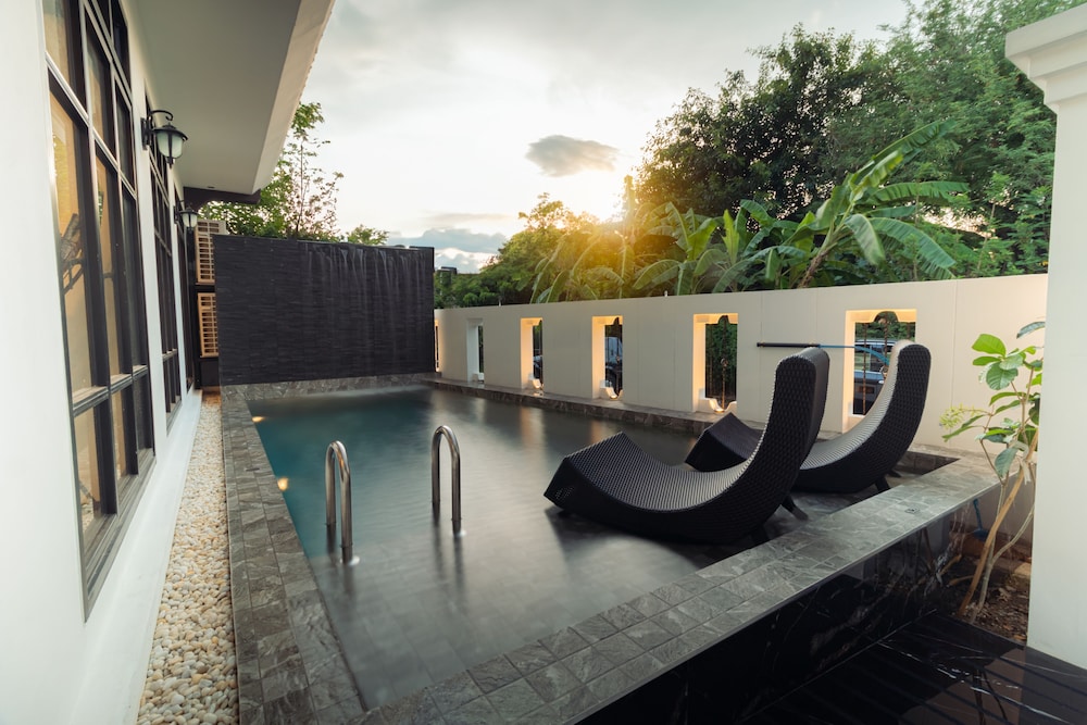 Enjoy the serene outdoor pool and lush garden views during your stay at Le Ville Lanna Boutique Hotel.