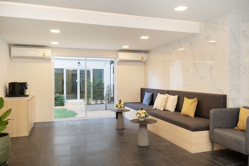 Very convenient location, close to some friends. But also easy transport to airport. Can even walk to skytrain to airport if don't have much luggage. Many restaurants and street vendors to buy food from. Room very clean and beds comfortable. Staff very, very helpful and kind. Helped us quickly get taxi to airport.