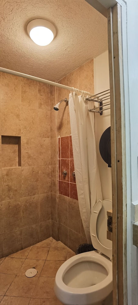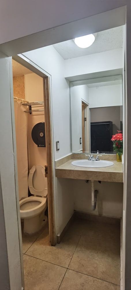 The good: the AC worked very well in the 99 degree heat and the bed was comfortable. The hotel itself is rundown and in need of a lot of maintenance/repair. The bathroom appeared clean but i didn't trust it enough to shower in it. The worse part was the neighborhood. Super sketchy, trashy, and the traffic noise outside my bedroom window was excessive. I would not stay there again.