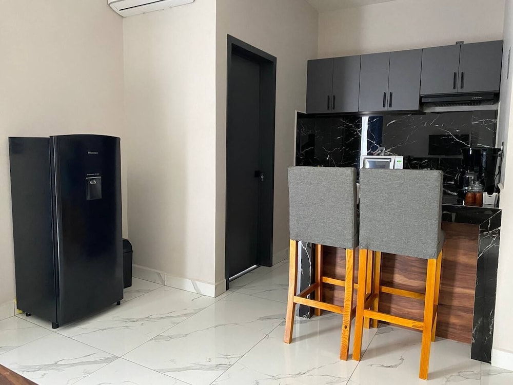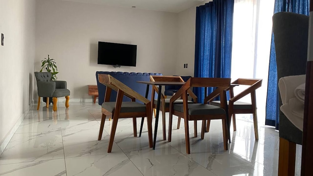 This is a brand new hotel with all modern amenities at a very reasonable rate!!! We booked a one bedroom suite- at least 800 square feet- furnished with California king bed, 1 ½ bathrooms, living room, full kitchen, dining area that seats four, and 2 televisions. Pictures on this site does did not do the room justice. It is located in a quiet neighborhood at the end of a cul-de-sac (no traffic noise) a little north of the city center. It was a 5-7 minute taxi ride to main tourist areas. Our hosts (Juan and Abigail) treated us like royalty. They graciously accommodated multiple requests due to horrific Aeromexico flight changes and cancellations. Surrounding area has quaint mom and pop restaurants, cafes, and small convenience stores. We highly recommend Hotel Suites Quieto if you are looking for a respite from the hustle and bustle of downtown Oaxaca City.