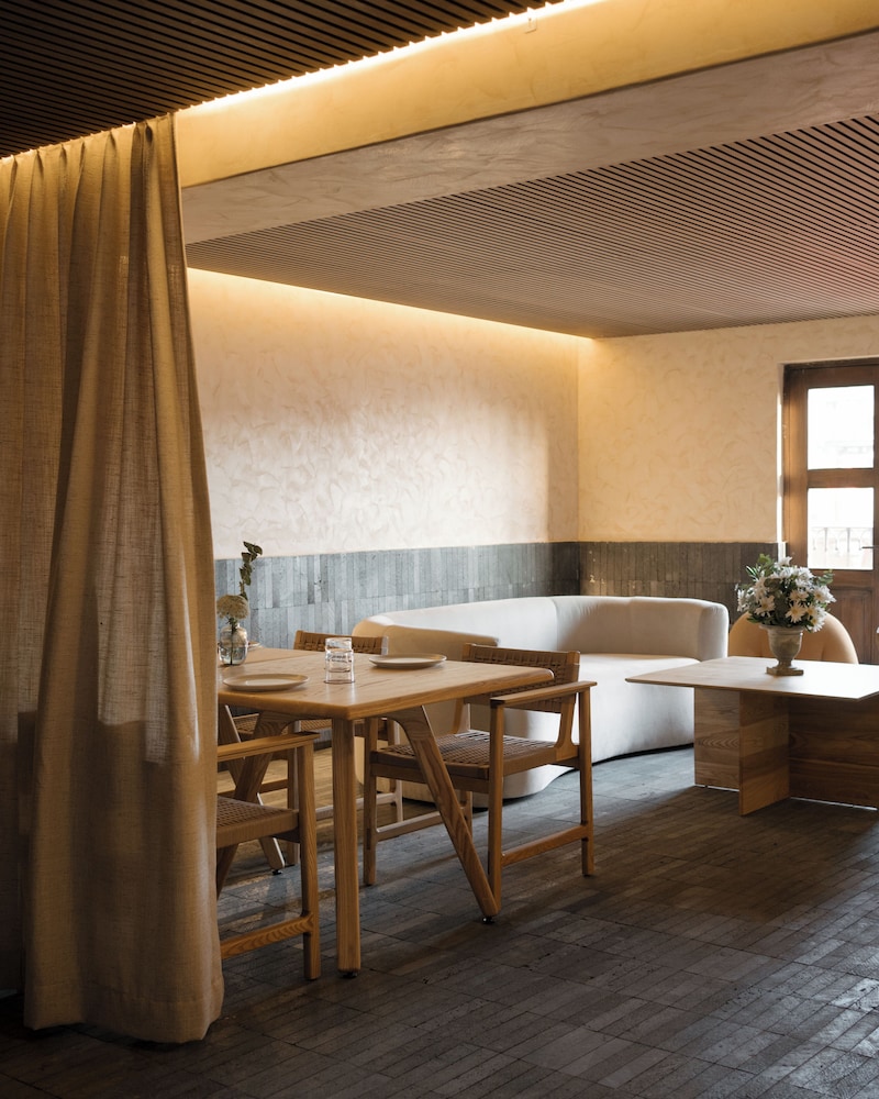 El personal es muy amable, pero como todo hotel boutique no tiene muchas cosas, porque no sería rentable. La calle donde está es muy ruidosa y nos pusieron en un primer piso, así que se oía absolutamente todo lo que pasaba afuera. Y me di cuenta desde que entré y vi los tapones de oídos. Todo está puesto al revés, desde la manija de la puerta de la habitación (abre hacia arriba), las llaves se abren en sentido contrario a como deben, la regadera tiene el agua caliente donde la fría, cierras para donde deberías abrir etc. Solo hay un colgador en el baño. El aire acondicionado tiene una rejilla de madera por estética me imagino, pero se ve la luz toda la noche. Se preocuparon más por el estilo que por la función, en resumen.