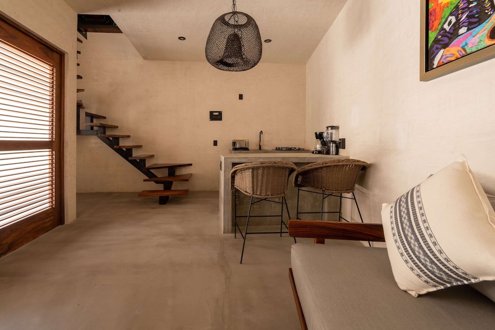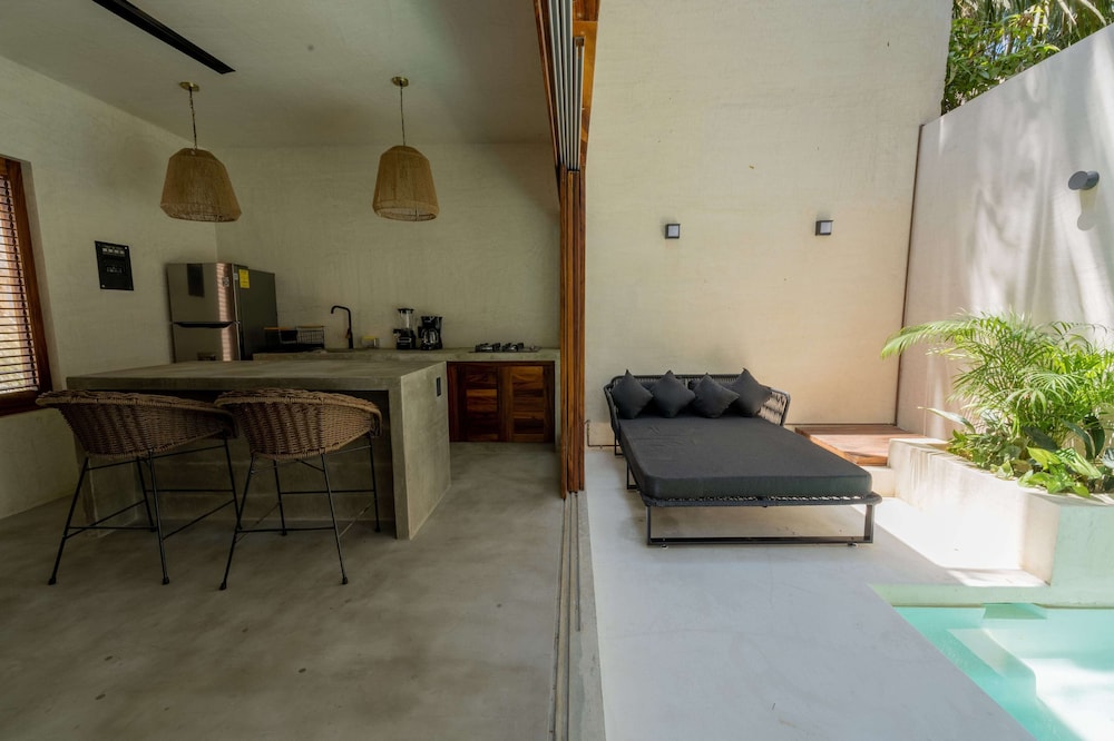 Very clean, well maintained property. Personalized service from a very friendly staff. Steps from the beach, cafes close by. Taxi service was readily available for Zicatela Beach and La Punta locations. Air conditioned bedrooms upstairs with a nice, private plunge pool. We received a very helpful list of recommended local restaurants and establishments. The manager was quick to respond via WhatsApp if we needed anything. We enjoyed our stay here!