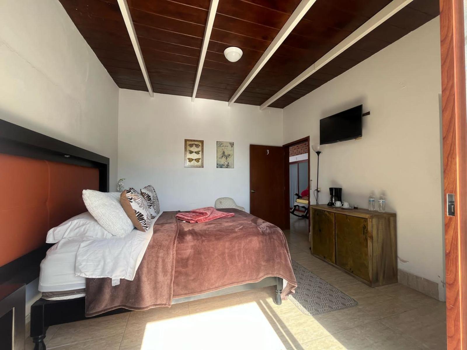 La Palapa & Posada Mía, nestled in Alto de Tío Diego, offers a tranquil retreat with a garden, terrace, and on-site dining. Comfortable Rooms feature modern amenities like flat-screen TVs and free WiFi, with some rooms boasting balconies for breathtaking views. Convenient Services include room service, concierge assistance, and currency exchange for a hassle-free stay. Unwind with a refreshing drink at the bar before exploring nearby attractions like Clavijero Botanic Garden and Lake Walking. Start your day with a delicious continental breakfast before setting off to visit the iconic Metropolitan Cathedral, just 37 km away. Ready to experience a relaxing getaway? Book your stay at La Palapa & Posada Mía now.