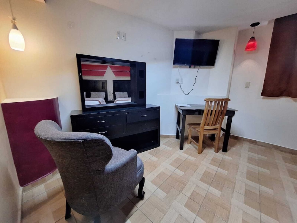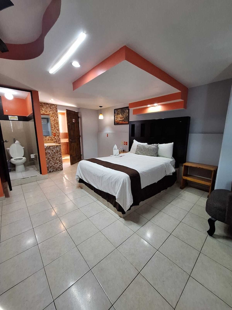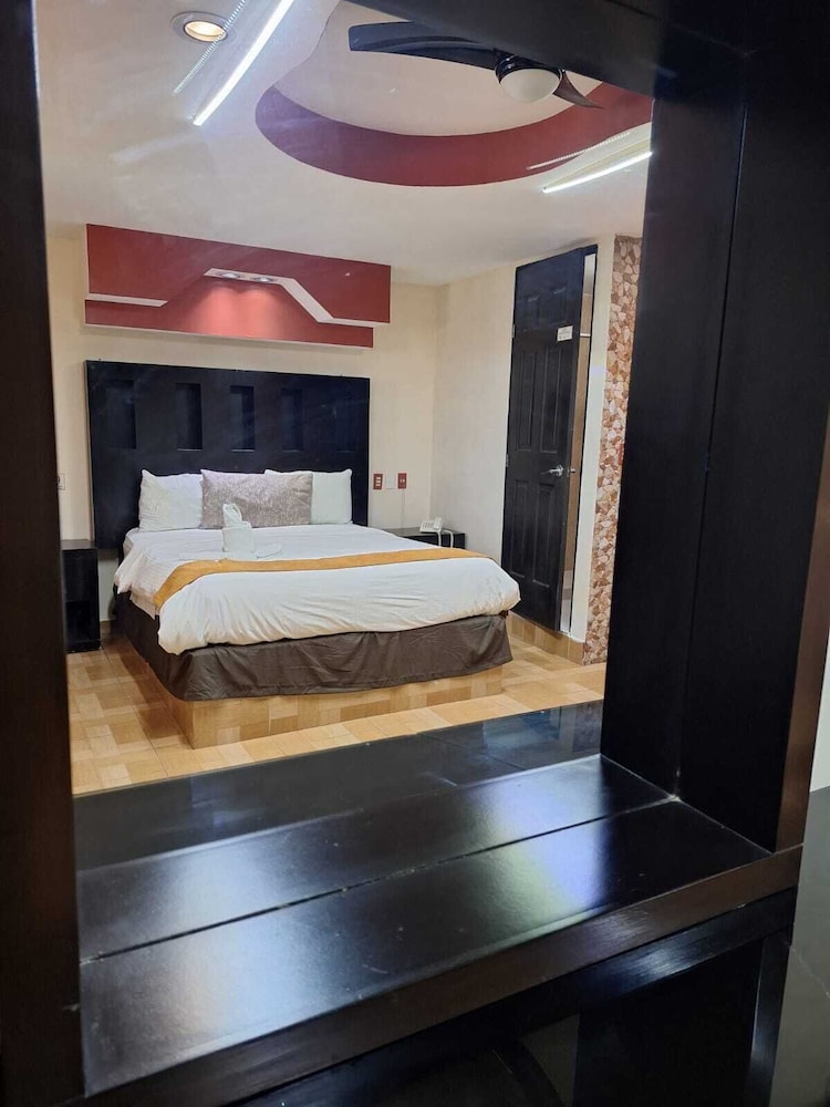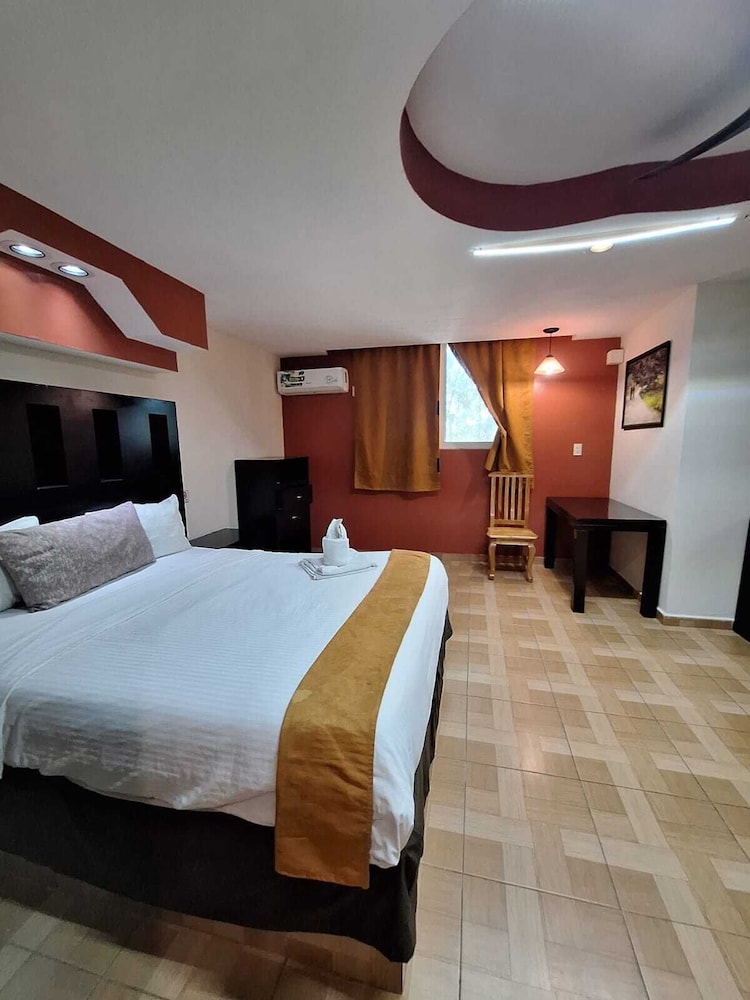 En si, es un motel, el baño no estaba limpio, había cucarachas muertas en el cuarto, había focos fundidos, no estaba bien aseado, la alberca está sucia, ha ia un estanque de peses y el agua del estanque estaba contaminada, la chapa de la puerta no servía.
