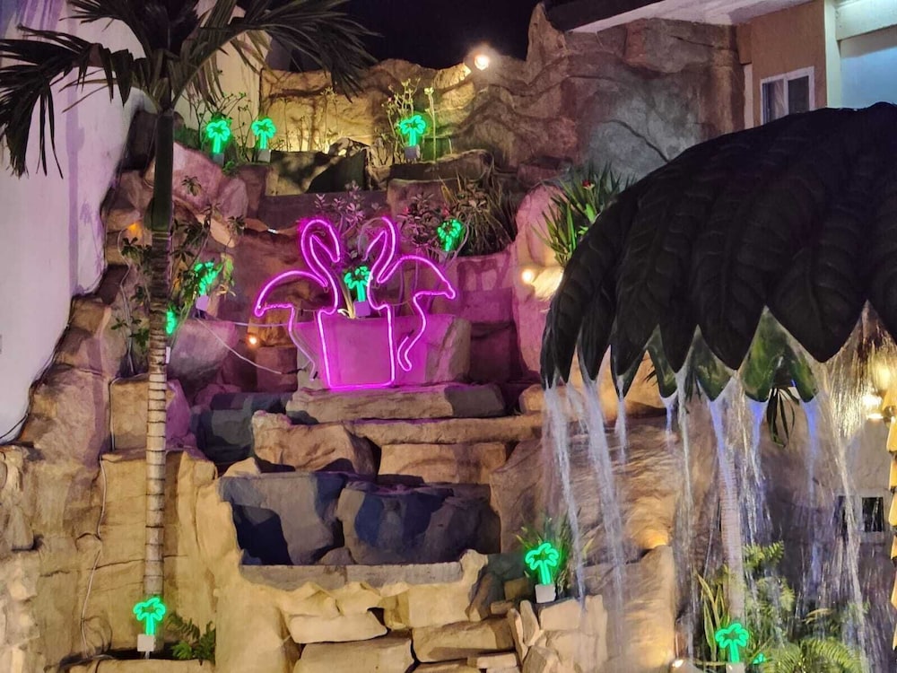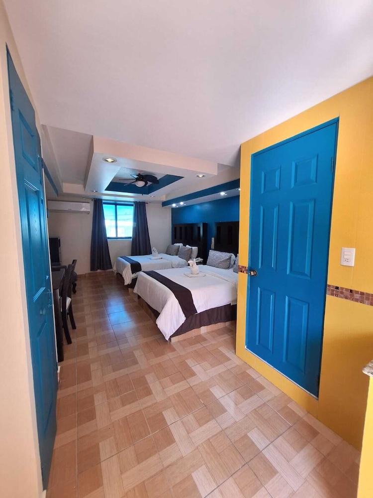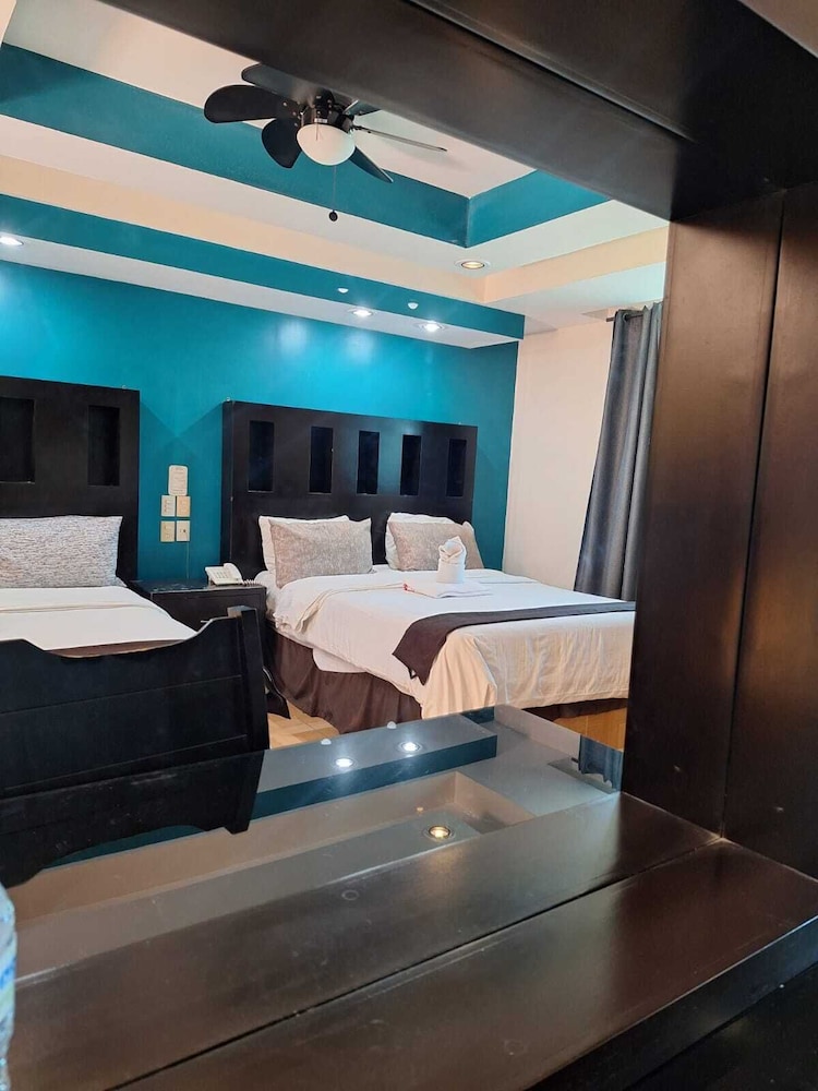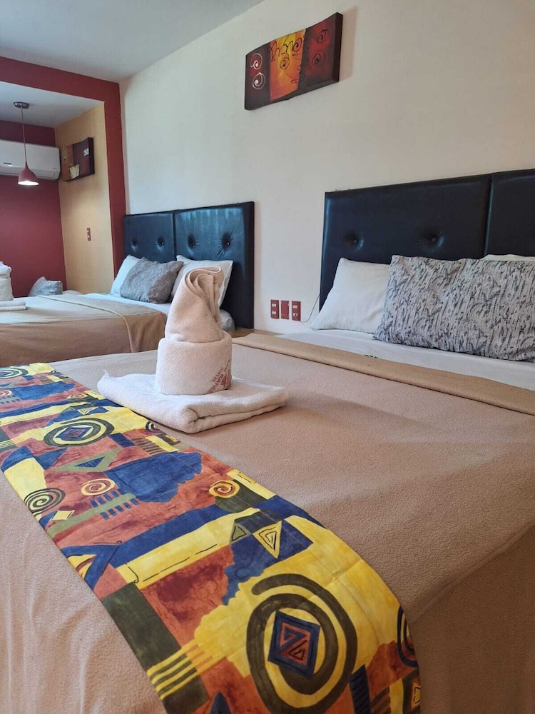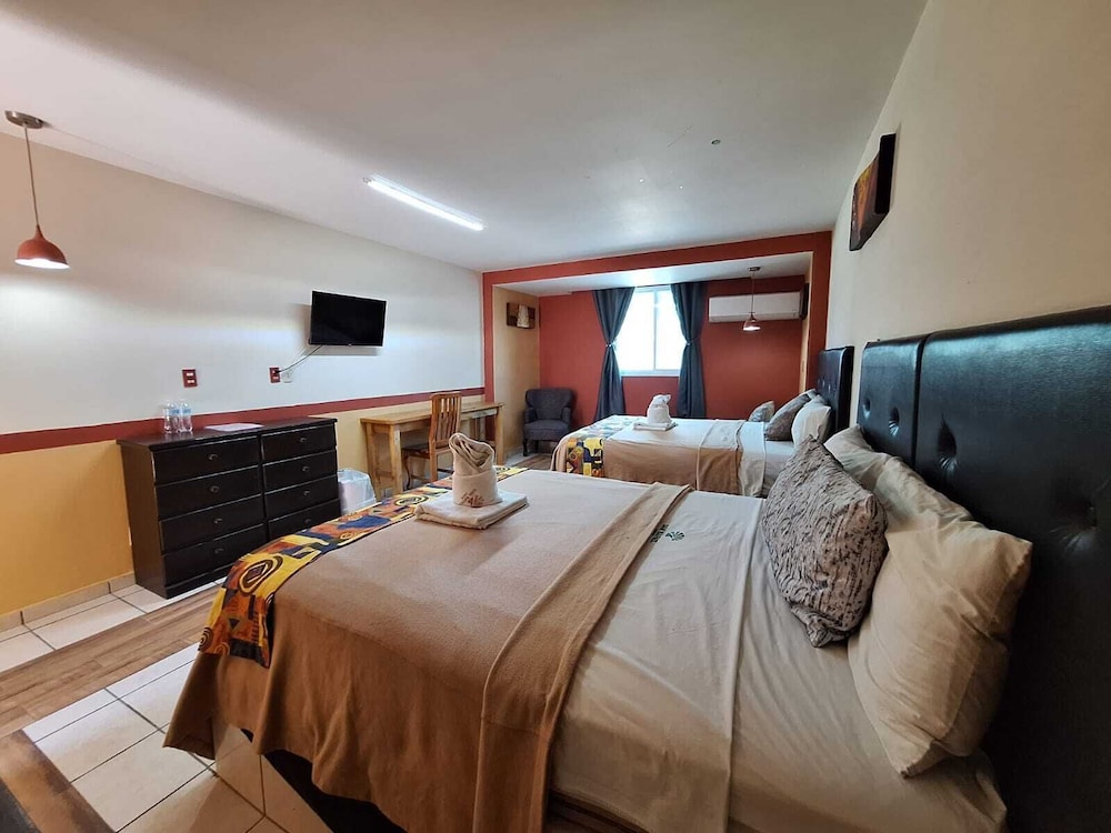 En si, es un motel, el baño no estaba limpio, había cucarachas muertas en el cuarto, había focos fundidos, no estaba bien aseado, la alberca está sucia, ha ia un estanque de peses y el agua del estanque estaba contaminada, la chapa de la puerta no servía.