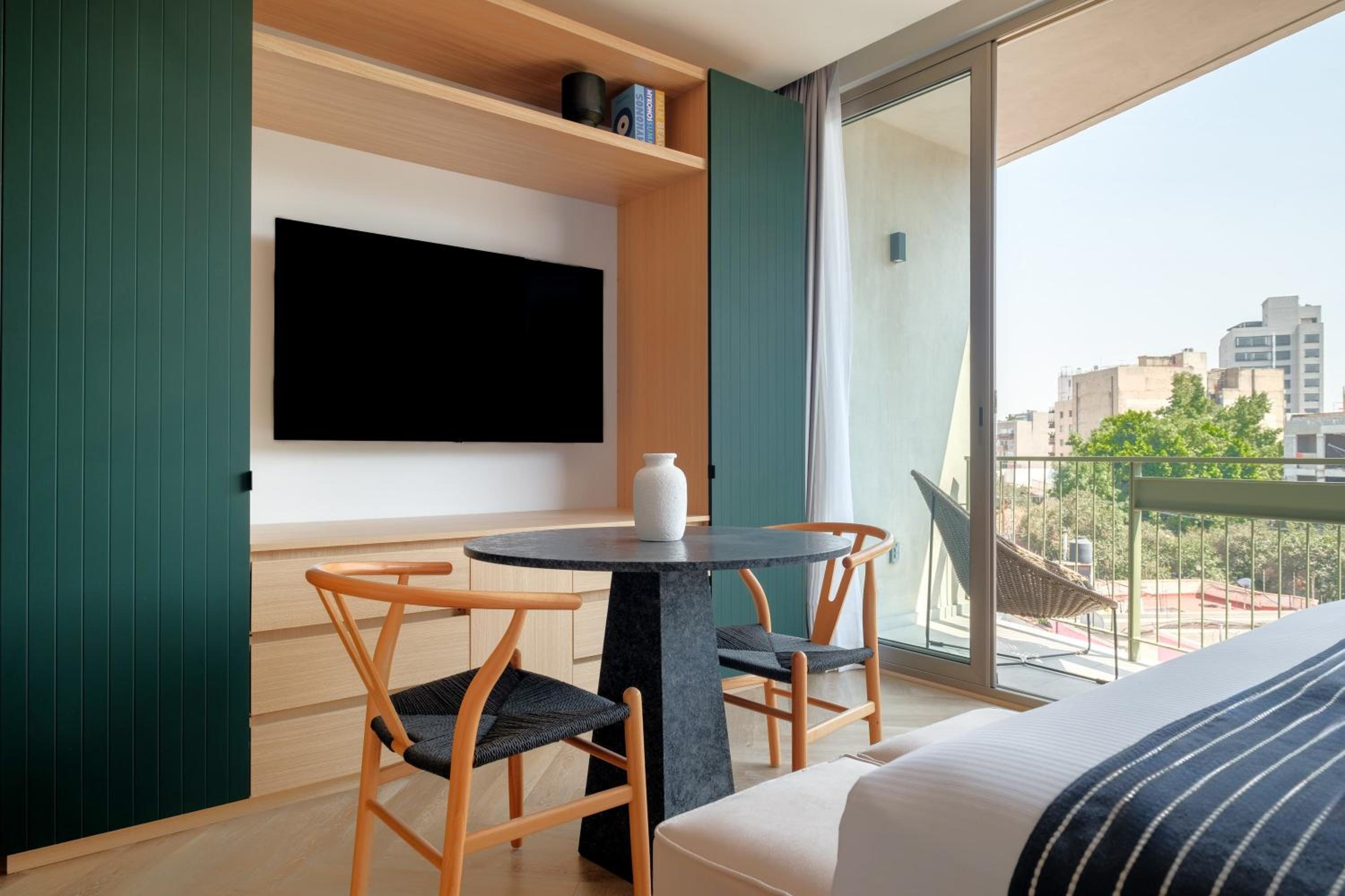 The location was perfect. Staff was friendly and attentive. The Room was large and bright and very comfortable with a great bed and lots of storage. The roof top patio was also very nice