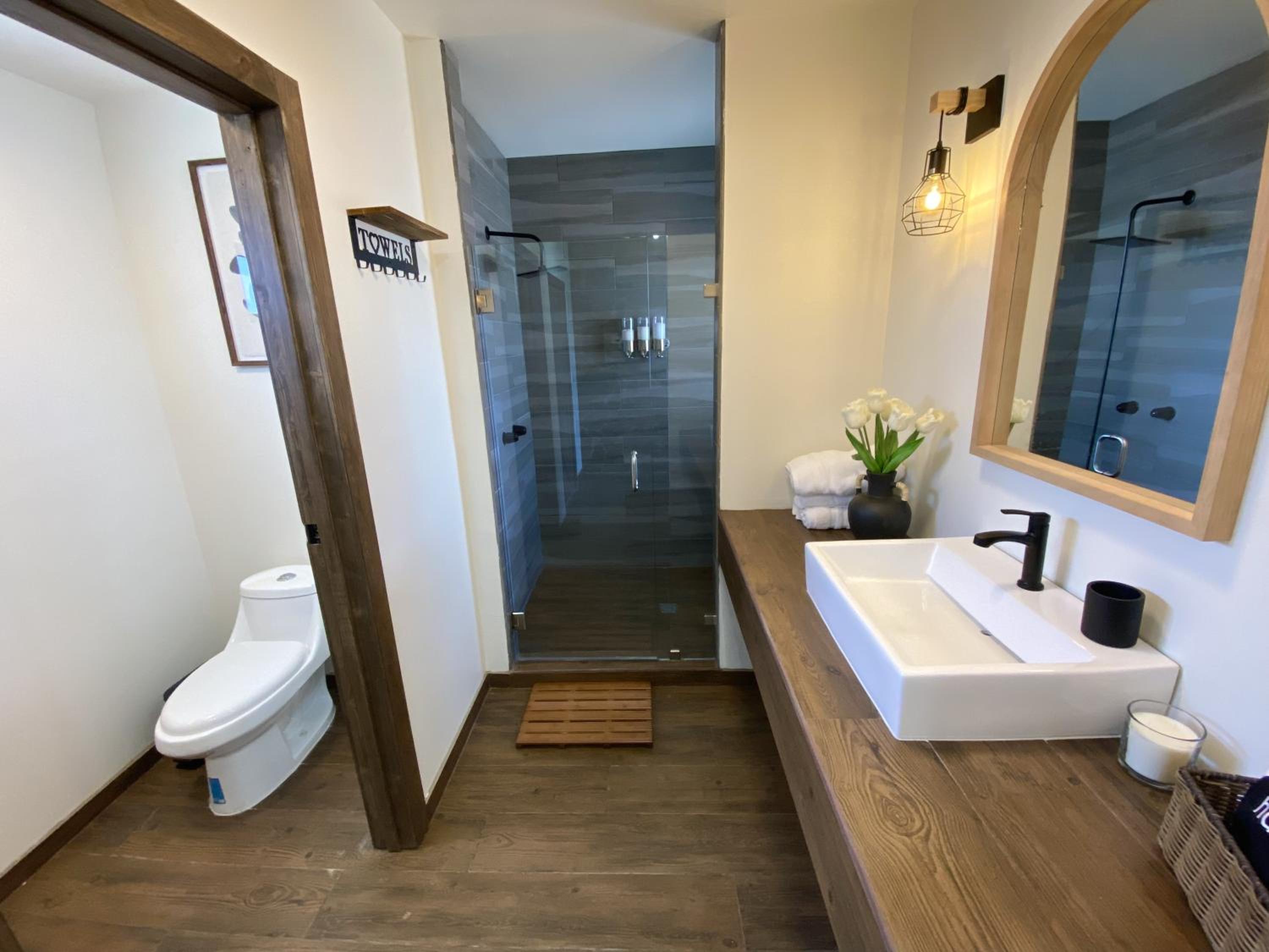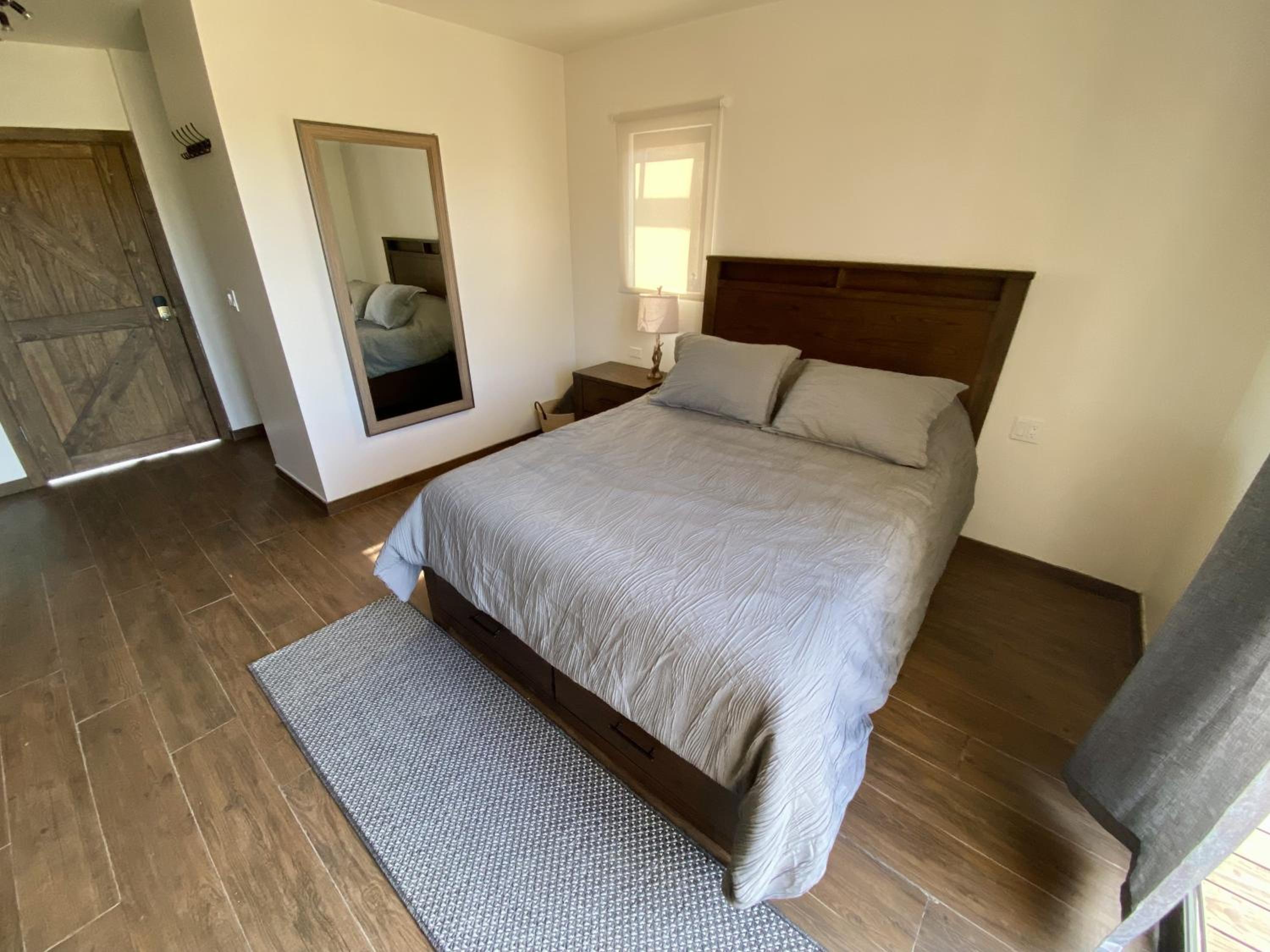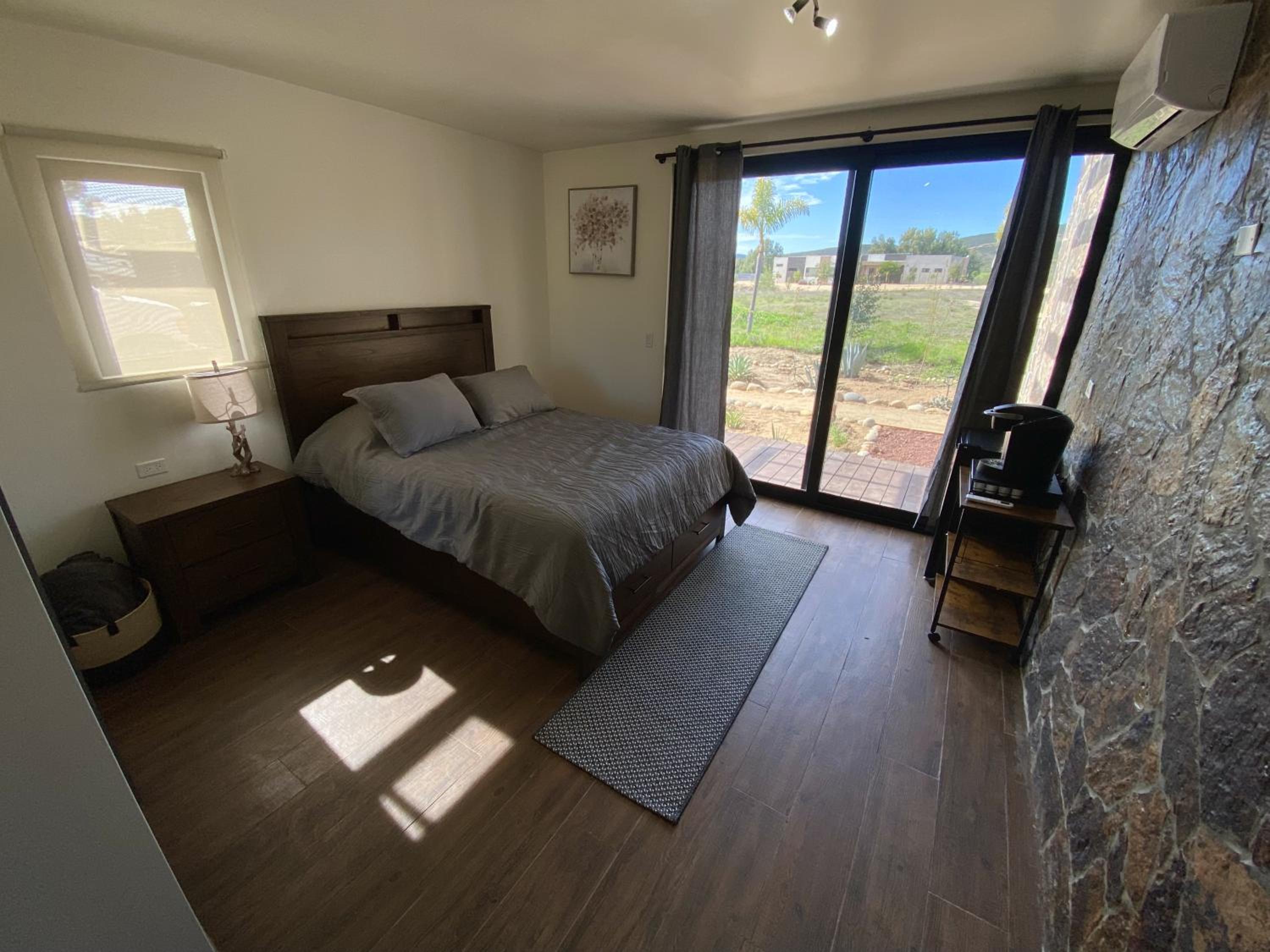 Experience air-conditioned rooms with modern amenities and comfortable bedding at Estancia Cataviña Valle de Guadalupe.