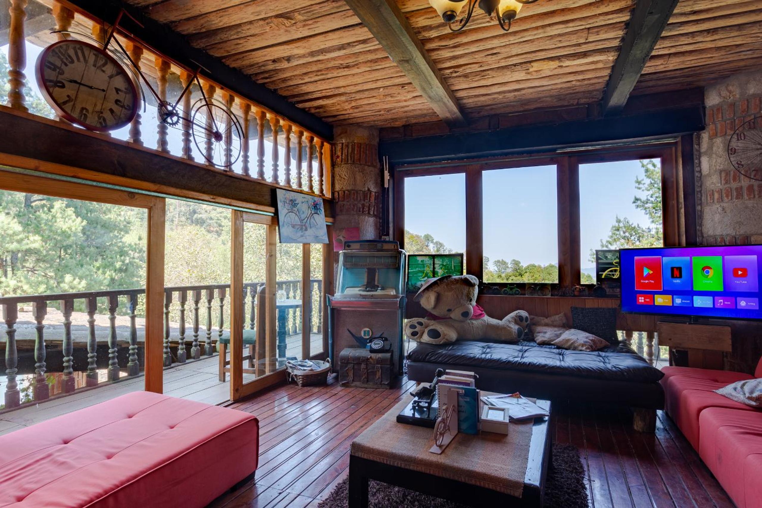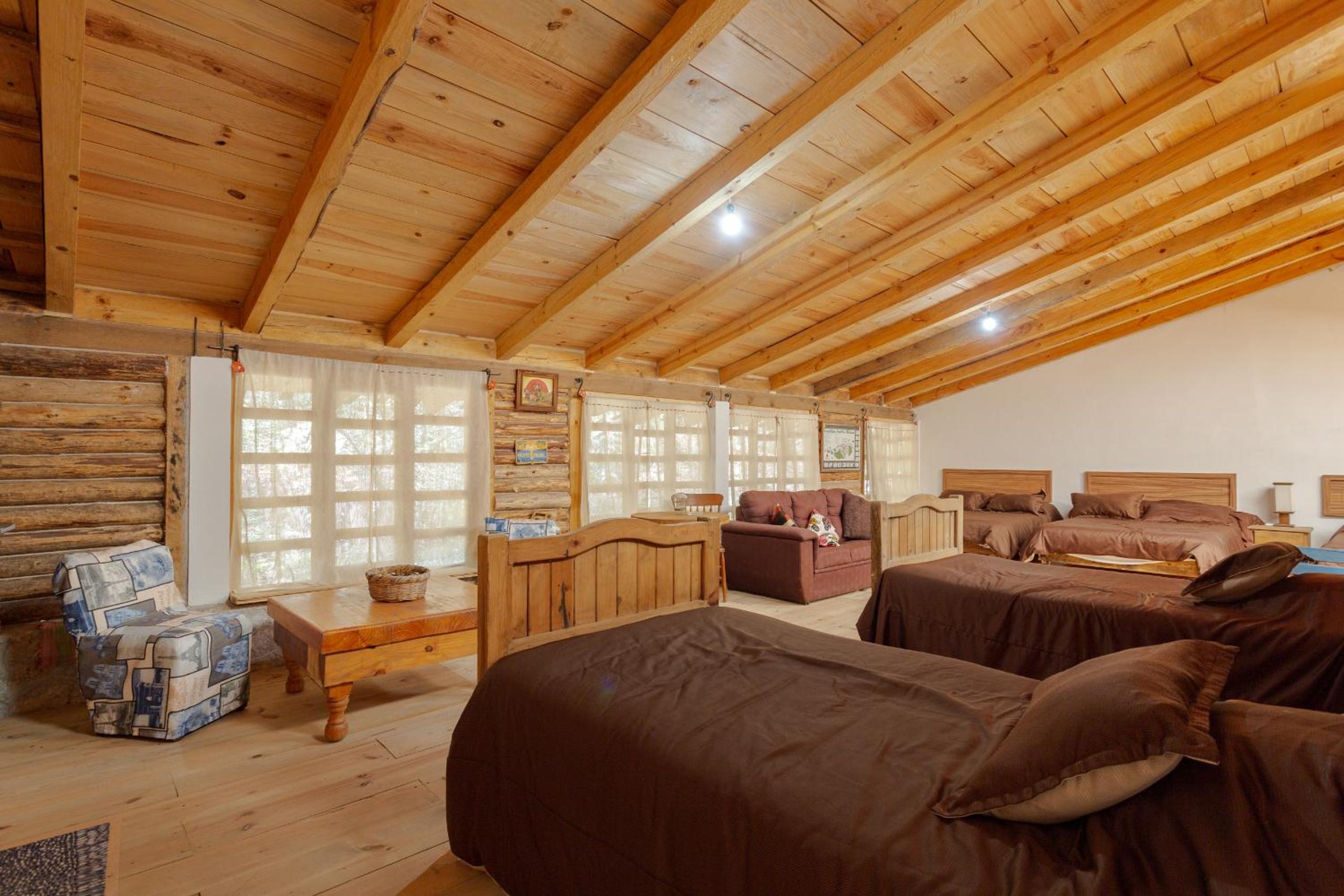 Es un lugar muy hermoso inmenso en el bosque cerca de la montaña tiene algo de senderos qué recorrer con instalaciones rusticas pero muy interesantes, falta mayor limpieza en las habitaciones, hay poco personal. Tiene huerto de manzanas muy lindo... una estancia, en lo que se puede llamar el loby, con juegos de mesa muy padre.