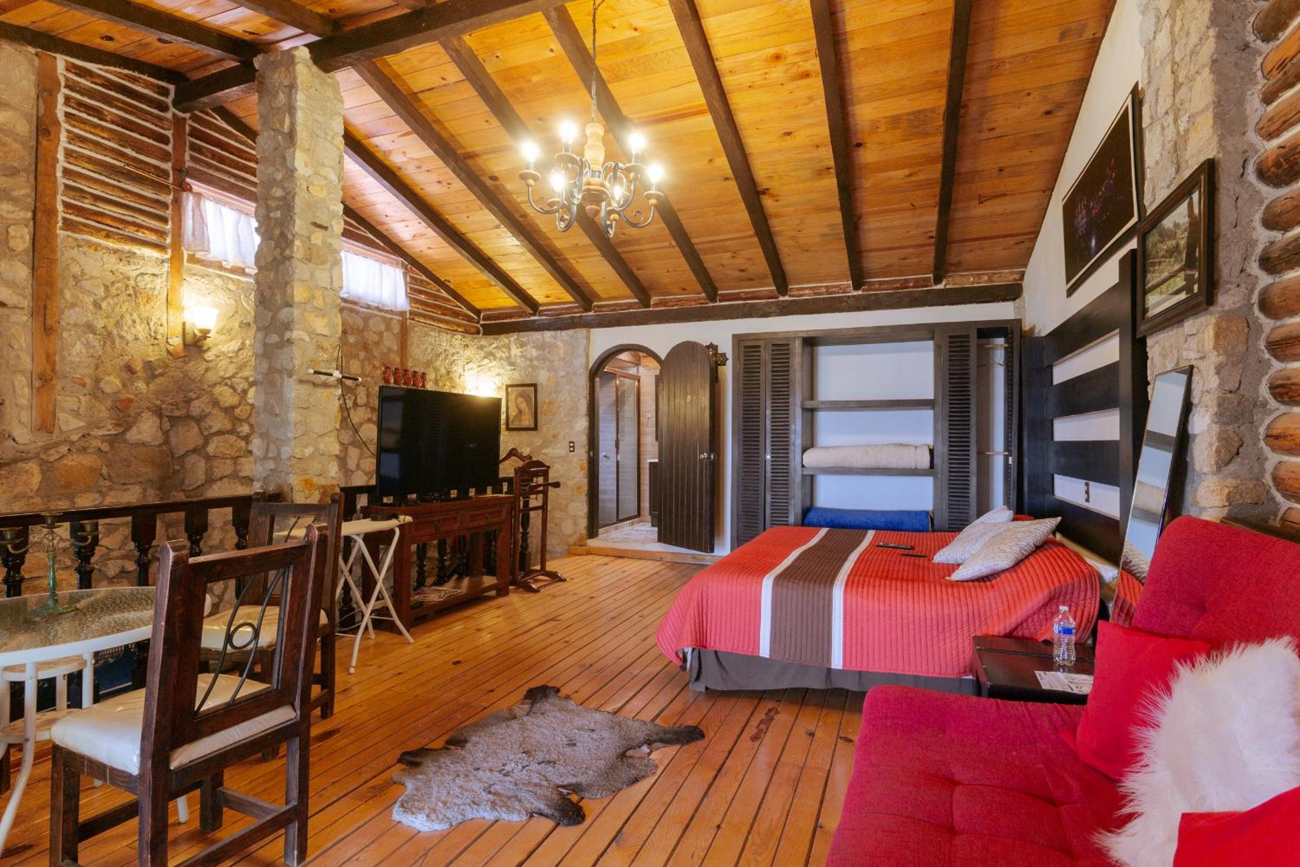 Hotel Boutique El Rincón in Zacatlán offers elegant 4-star accommodation with rooms featuring stunning mountain views, modern amenities, and cozy decor. Some rooms even come with a convenient kitchenette for added comfort.