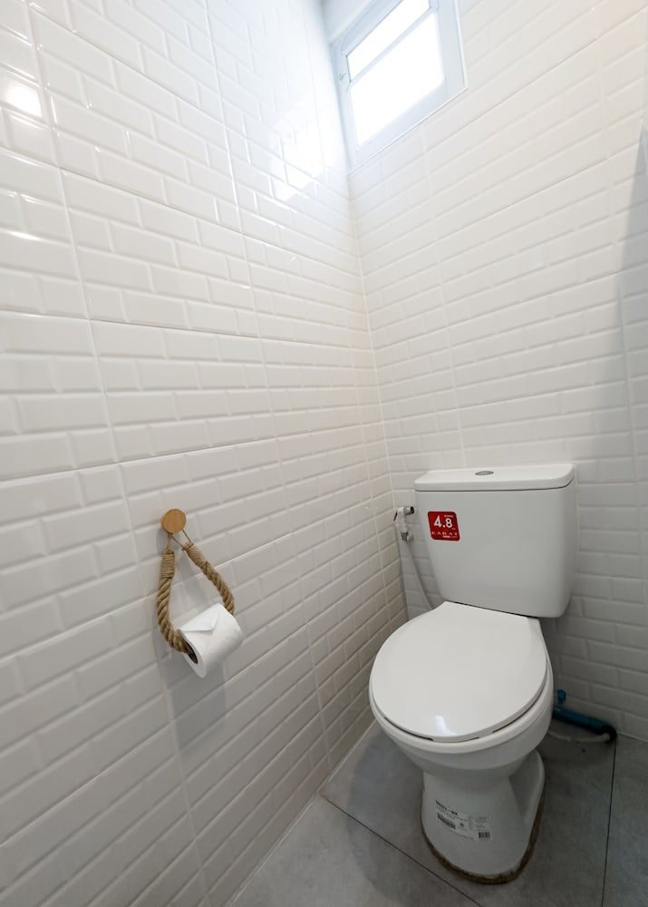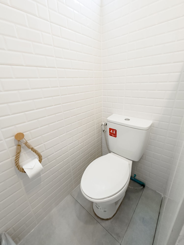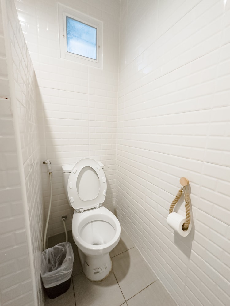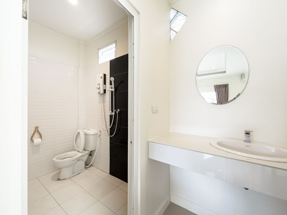 Badet var lite og trangt med svært glatte fliser på gulvet, så man måtte være svært varsom da det sprutet vann over alt når man dusjet, ikke skillevegg mellom dusj og resten av badet. Det var avføring etter Gekkoer over alt, i tak, på vegger og generelt mye skitt og støv.