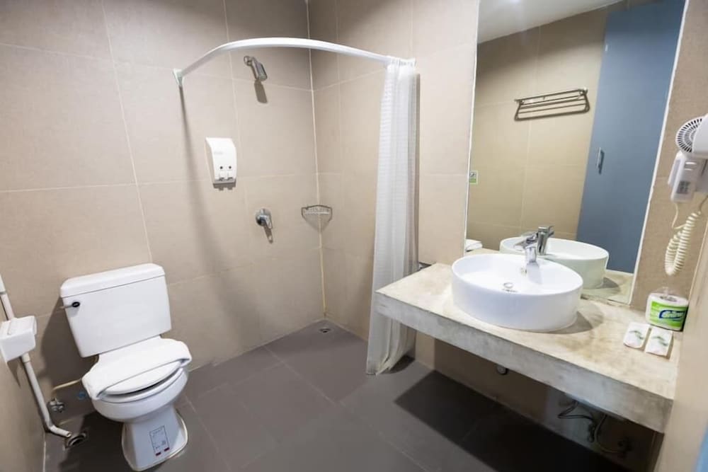 Nice little hotel close to the airport. It was clean with a good AC. Bathroom was fine, the water was a little weak, might have just been my room specifically but nice anyway