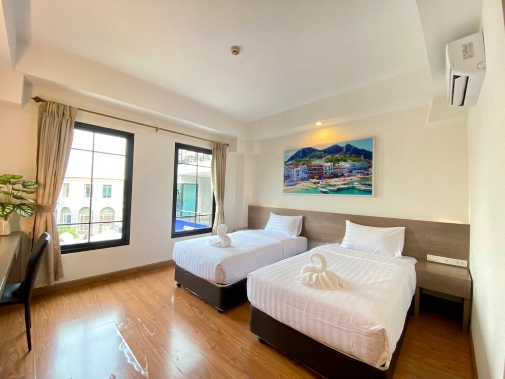Good location near airport, friendly staff, comfortable room and bed. Smart TV you can use for Netflix, Prime, etc. They provide free coffee, tea and crackers in an open air kitchen with microwave, lots of eating utensils and hot water dispenser. A variety of Instant noodles, snacks and drinks are sold in the main lobby at good prices (less than 7-11). The short-ride taxi from the airport is a fixed price 160 baht. Bolt ride back to the airport varies but is usually around 100 baht.
