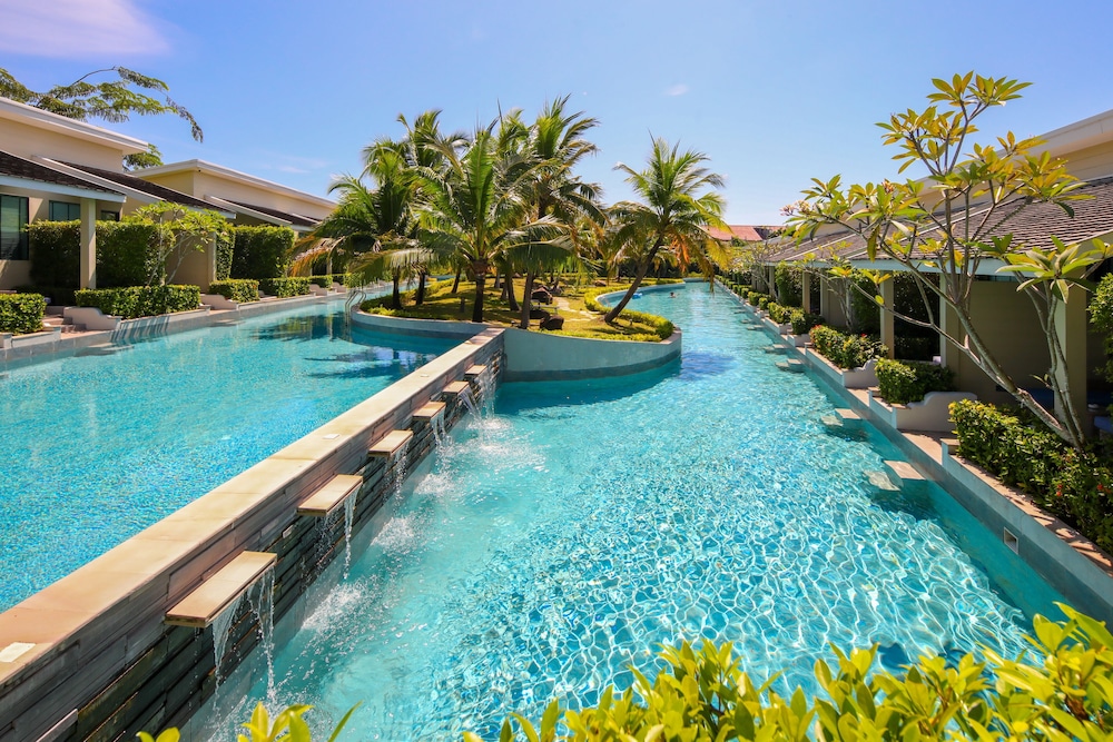 Relax in one of the 135 air-conditioned rooms featuring private pools and enjoy amenities like complimentary Wi-Fi and stocked minibars.