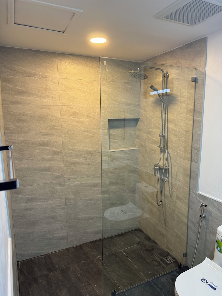 The owner and staff were very polite and kind. The bathroom was very new and clean. The room was spacious the bed was comfortable. The food was very good, the beach was a short walk, there were many places to walk to for food, shopping and drinks.