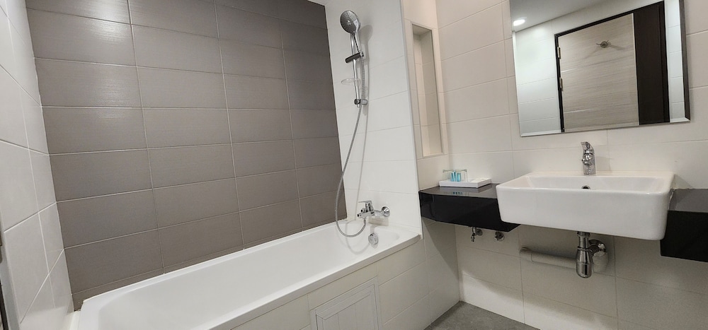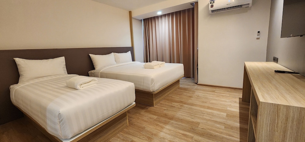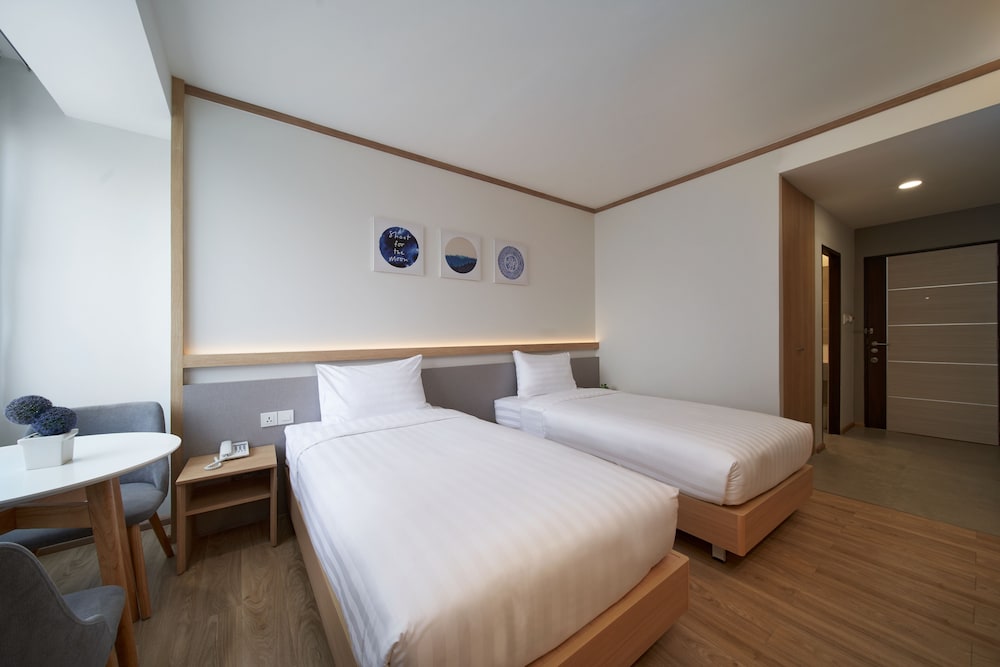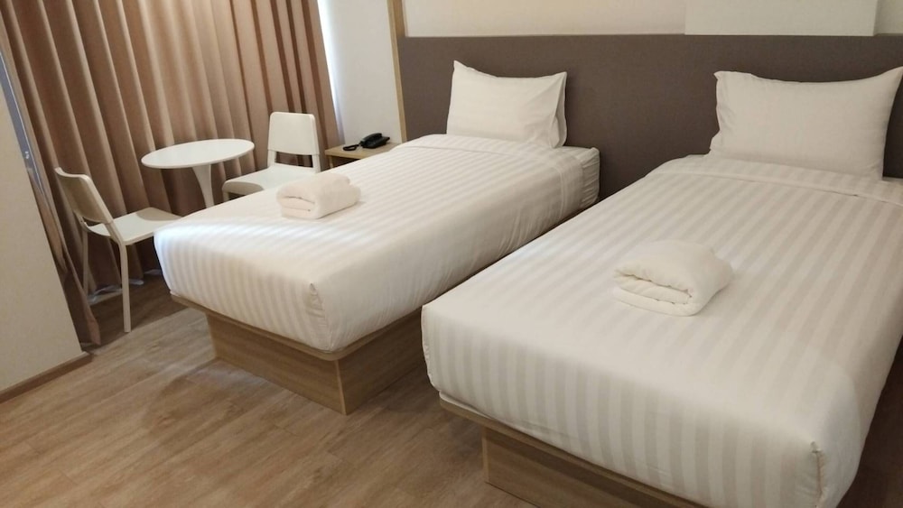 今次3人行,須要有3個床位,原來吾係好多酒店有提供3個可以舒服瞓嘅床位,更多係3人瞓一張king size床或者梳化床。雖然酒店位於MRT沿線冇甘方便,但床同枕頭係一讚,我地3人都覺得好舒服,其次酒店不提供牙膏牙刷拖鞋,要自己帶,浴缸稍高,要踏出可能對老人家有點吃力,其他都算不錯,性價比高。車站在泰國文化中心4號出口,酒店位於big c正後方,,利用停車場通路可以以捷徑進出酒店。至於早餐,雖然選擇不多,但該有都有,以這個價錢包餐都無可投訴咯。整體很好,前台樂意幫忙keep行李,check in時要先收1000匹也算不了甚麼問題。