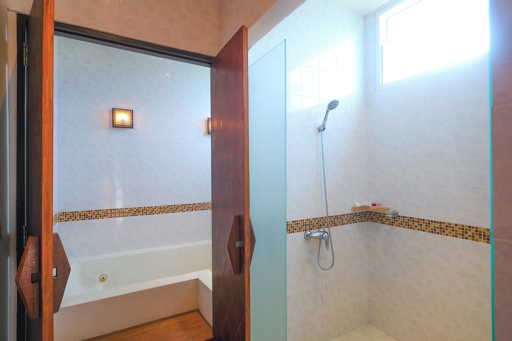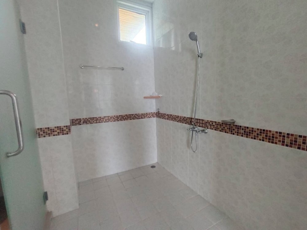 Our room had a balcony with a view. Very spacious, comfortable room. The bathroom had a tub but the shower was just a handheld just above the tub. The food at the restaurant was good and the staff were friendly and helpful!!