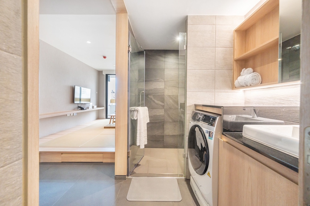 房間乾淨整潔,該有的設施都有。還有洗脫烘乾機,交通方便機能強。服務人員也非常客氣有禮。