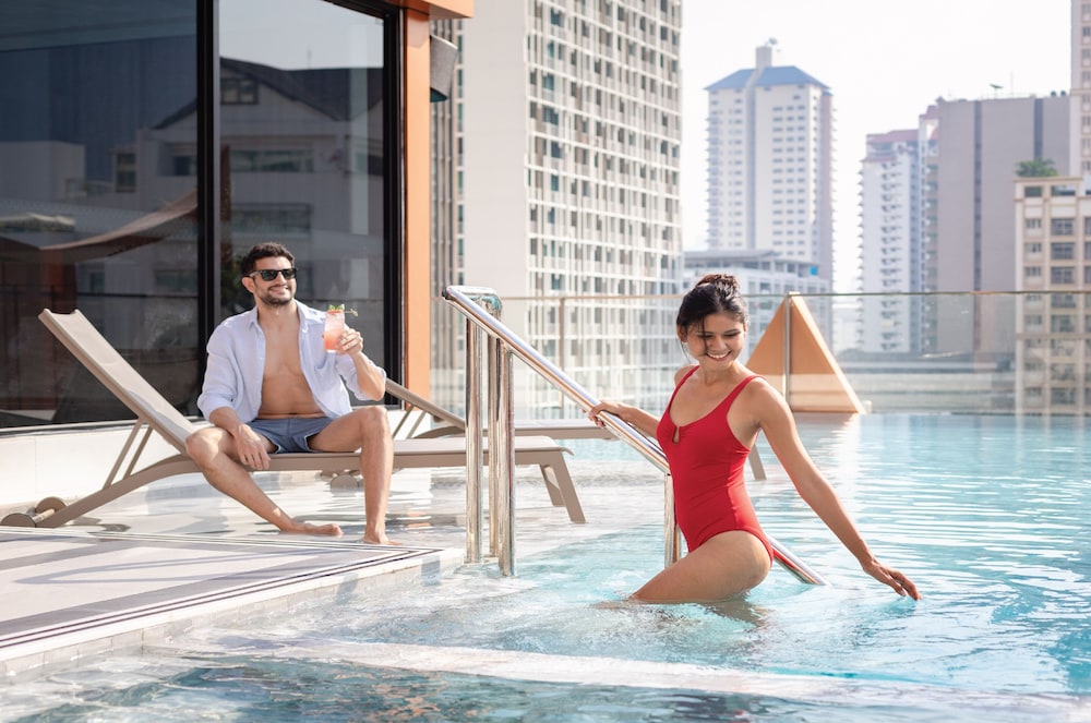 My fifth time to Thailand the first time in this hotel and is the best. I stay there sep,27/30. For me I like the view of the city although the staff tried to upgrade my room for free but I requested a normal room for a better view. Staff are wonderful with the Thai smile as always. Rooms looks new with clean fresh smell to it, The break fast is all HALAL (حلال) chicken. I didn’t have time to visit other facilities but my room over looked a nice roof top swimming pool kind of medium sized. also the staff mentioned a rooftop fitness center open 24 hours. The hotel centred in a quiet street away from the noise but walking distance to shopping and night life. Perfect for families and solo travellers