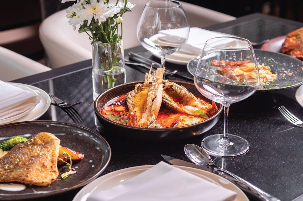 Indulge your taste buds at our on-site restaurant, Mariga, offering mouthwatering meals for lunch, dinner, and brunch. For a casual bite, enjoy snacks at our café while mingling during our complimentary evening receptions.