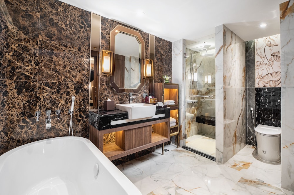 Nice luxurious appearing Hotel. Breakfast buffest is very good. Convenient locations. Our room did not have a hair dryer, travel kit with toothbrush, skin lotion. I think that they normally stock these items but may have rushed to get the room ready. They were also very strict with Noon checkout with us.