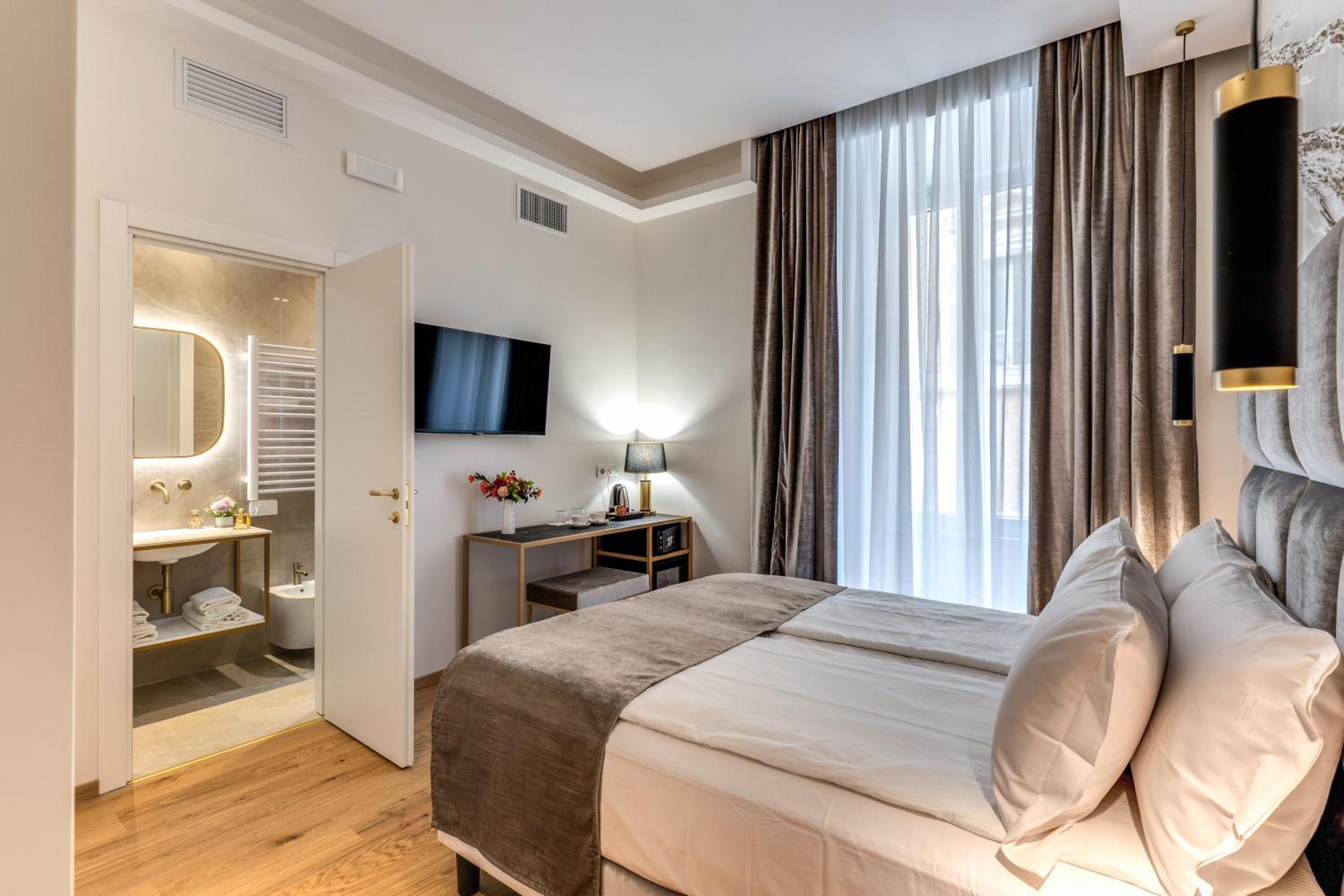 The hotel is at walking distance from all the major attractions in Rome and less then 2min from the Spanish steps. The staff is very polite and went the extra mile to make our stay unforgettable. It’s located in a quiet area and the room was very nice and comfortable.