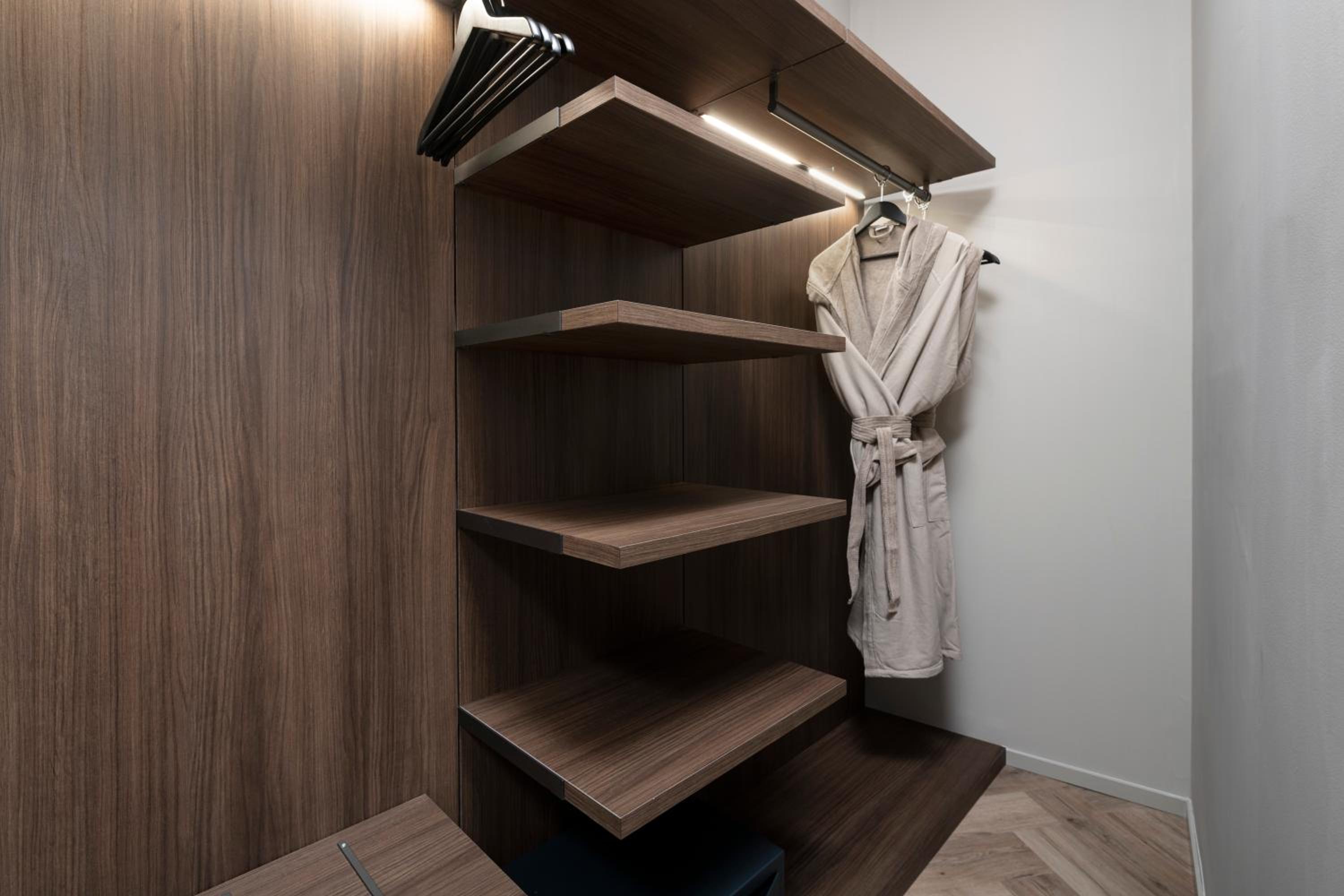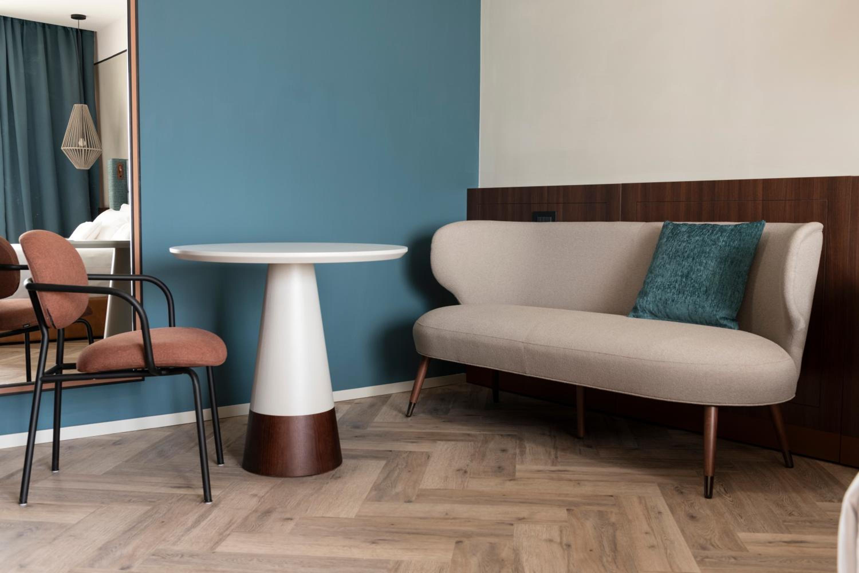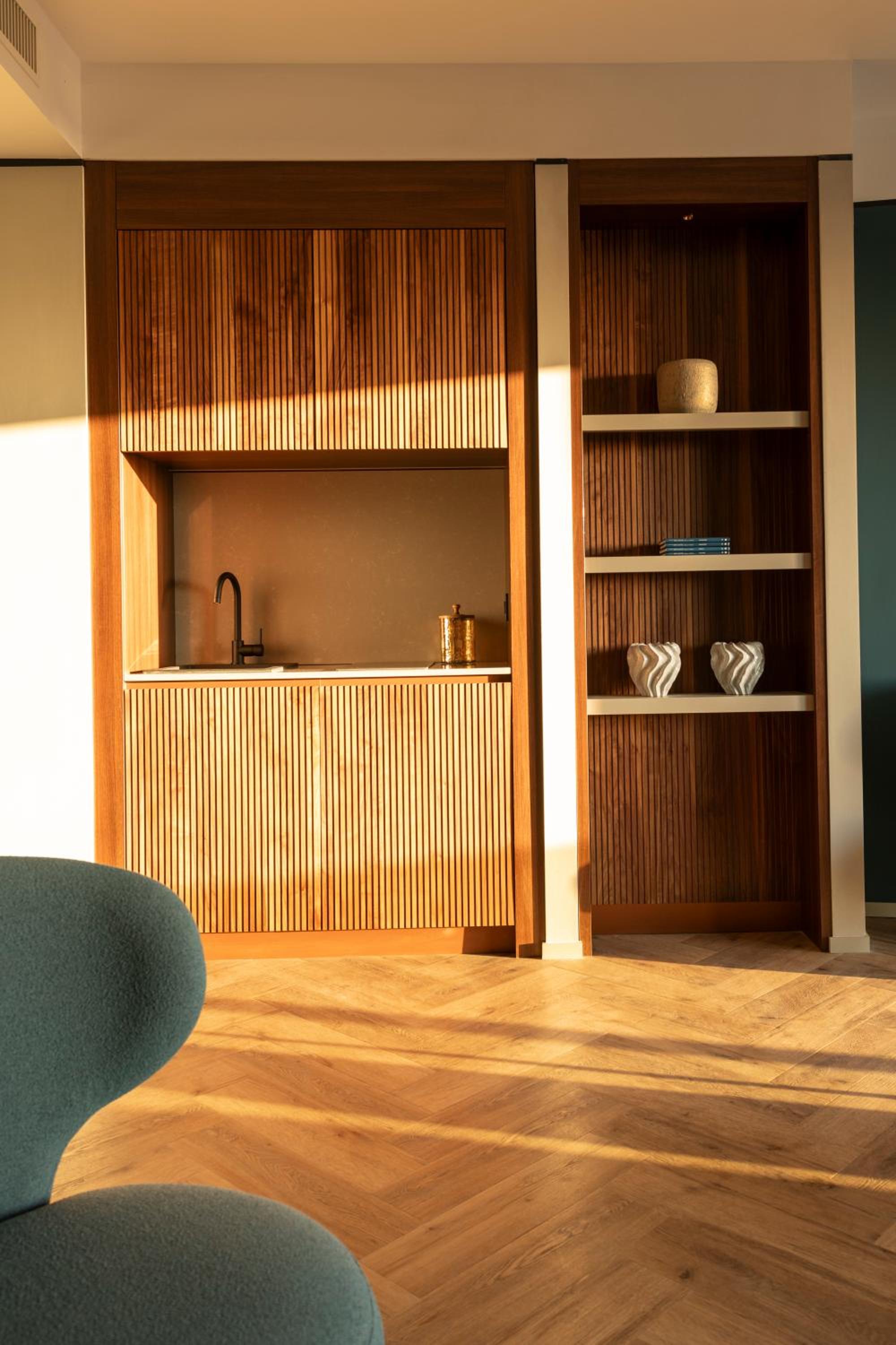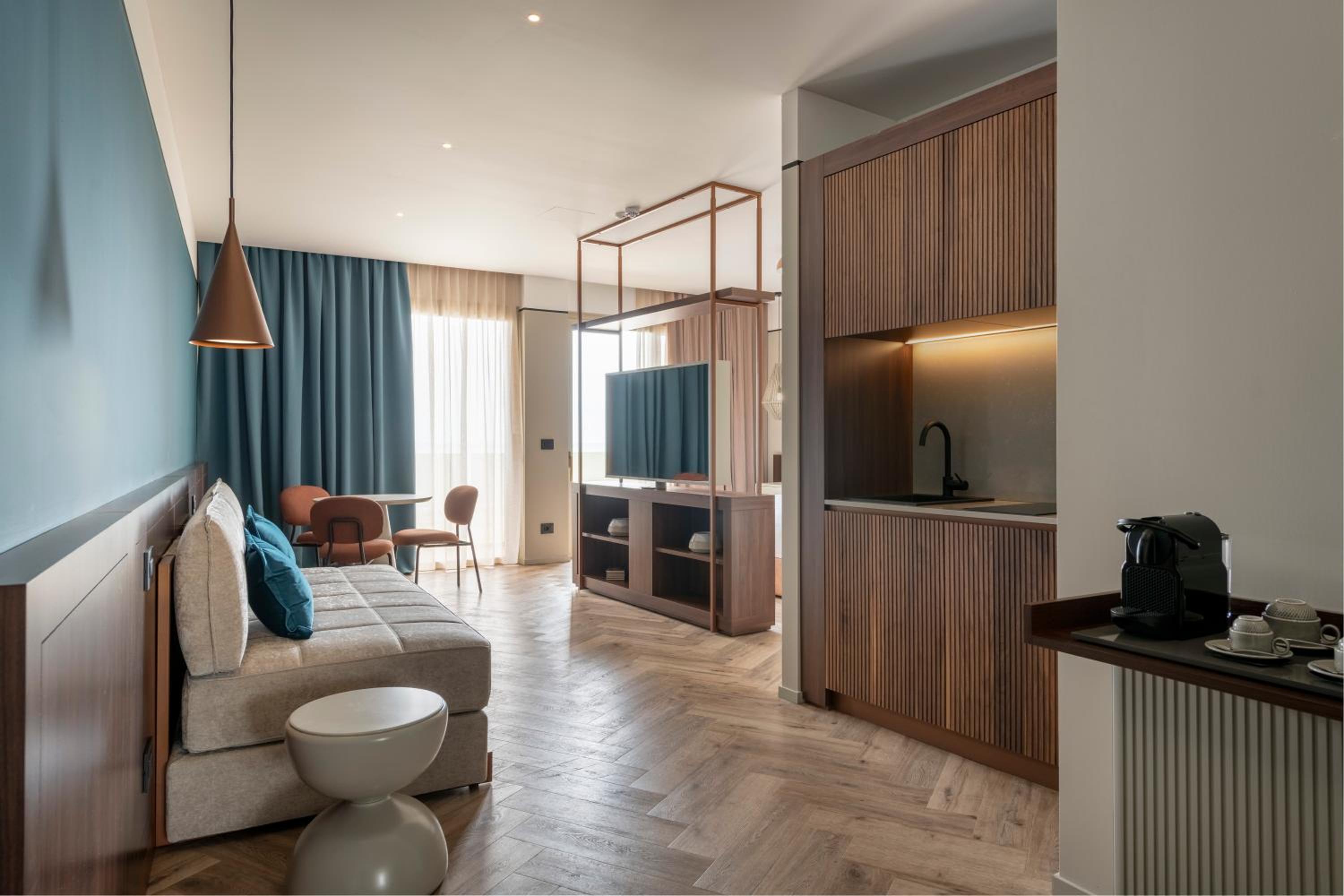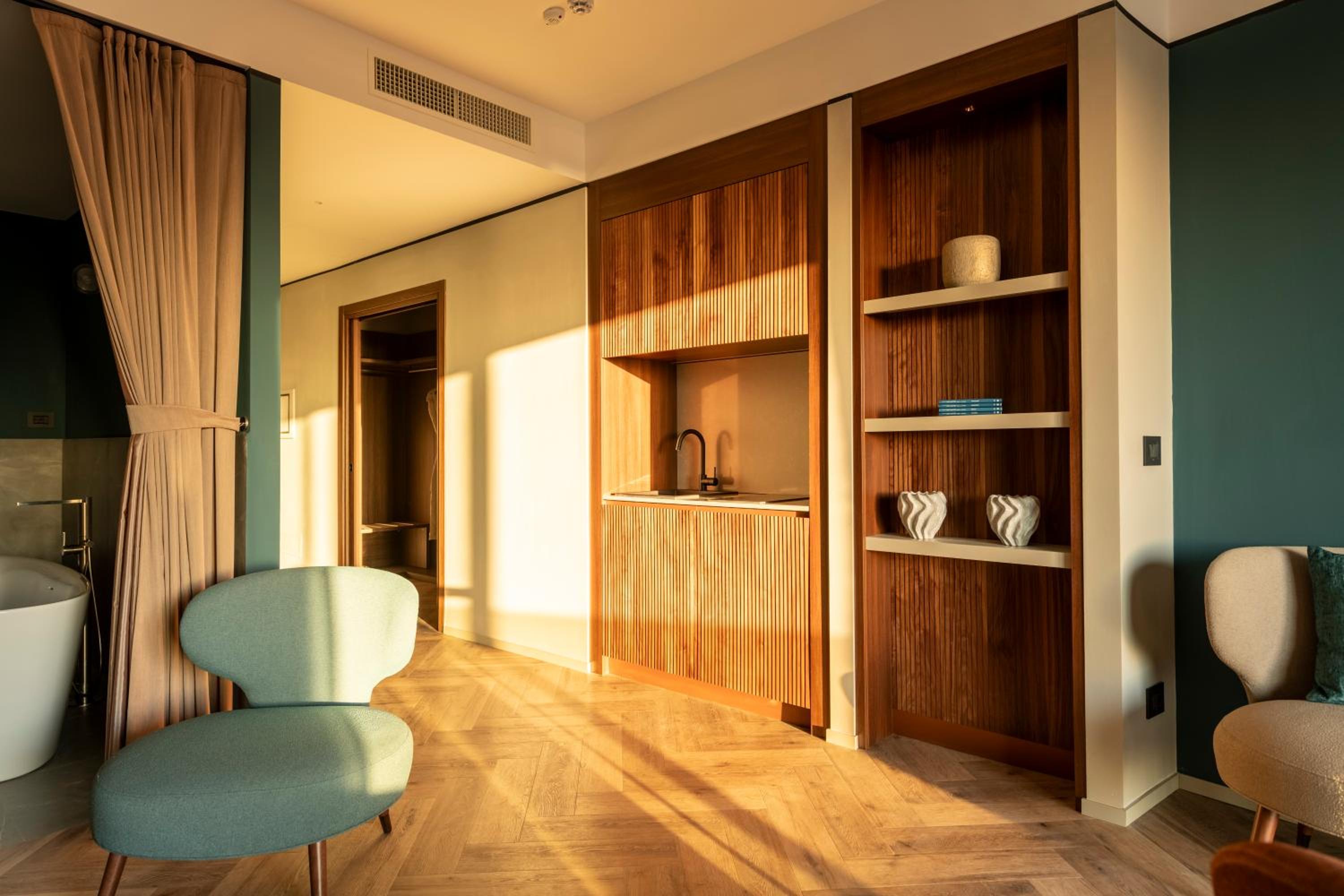 La nostra suite - enorme, sarà stata 50 mq - era dotata di ogni comfort. Dalla doccia alla televisione con piattaforme tv, dal balcone vista mare all’angolo cucina, tutto eccellente. Arredi di design, accessori e rivestimenti nuovissimi. Gli ambienti sono eleganti, la sensazione è di pulizia e cura dei dettagli. Quasi esagerata la quantità di amenities (borraccia di alluminio, ciabatte, flip flop…). Deliziose le marmellatine e la crema spalmabile, ma anche il tè e i biscotti, tutti prodotti di ottime marche. Piccolissimi (quasi invisibili) difetti nella muratura del bagno non scalfiscono la sensazione generale di qualità e benessere. Rapporto qualità / prezzo eccellente. Raramente mi è capitato di rimanere così soddisfatta. Lo consiglierei e ci tornerei subito. Una menzione speciale alla disponibilità, gentilezza e premura EXTRA di Maura alla reception: impagabile!