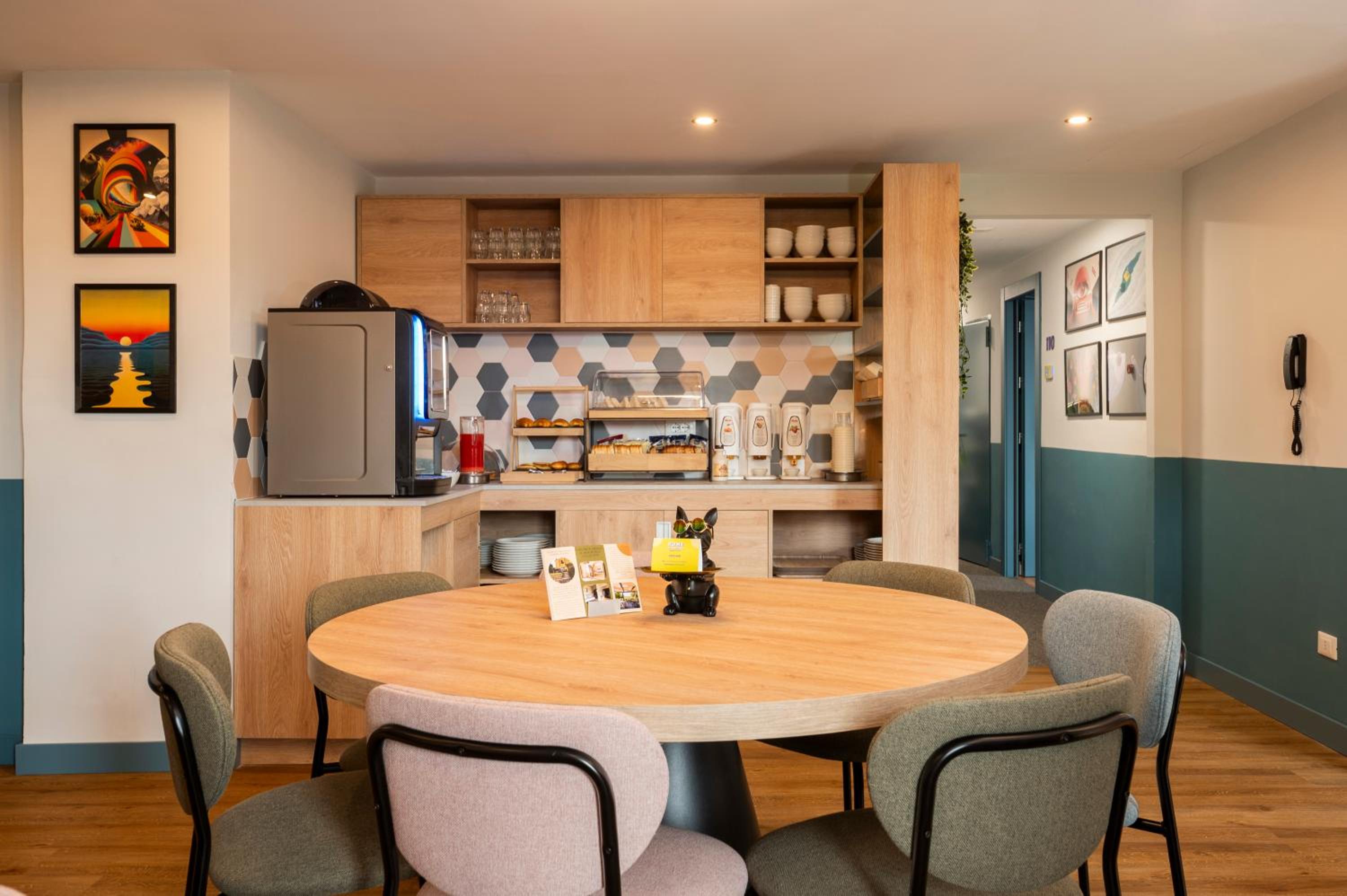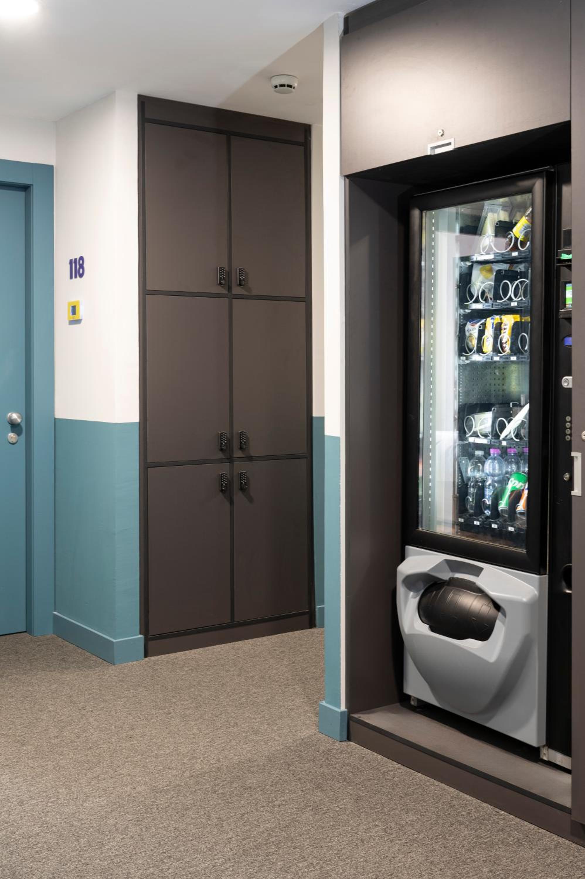 Umgebung ein wenig trist. Zugang zu Gebäude und Zimmer nur über Zahlencode. An der Haustür muss nochmal extra die Eingabe bestätigen, am Zimmer nicht. Nur zwei Garagenplätze, wer mit dem Auto kommt, muss ansonsten an der Straße parken - weitere Parkhäuser nur in größerer Entfernung