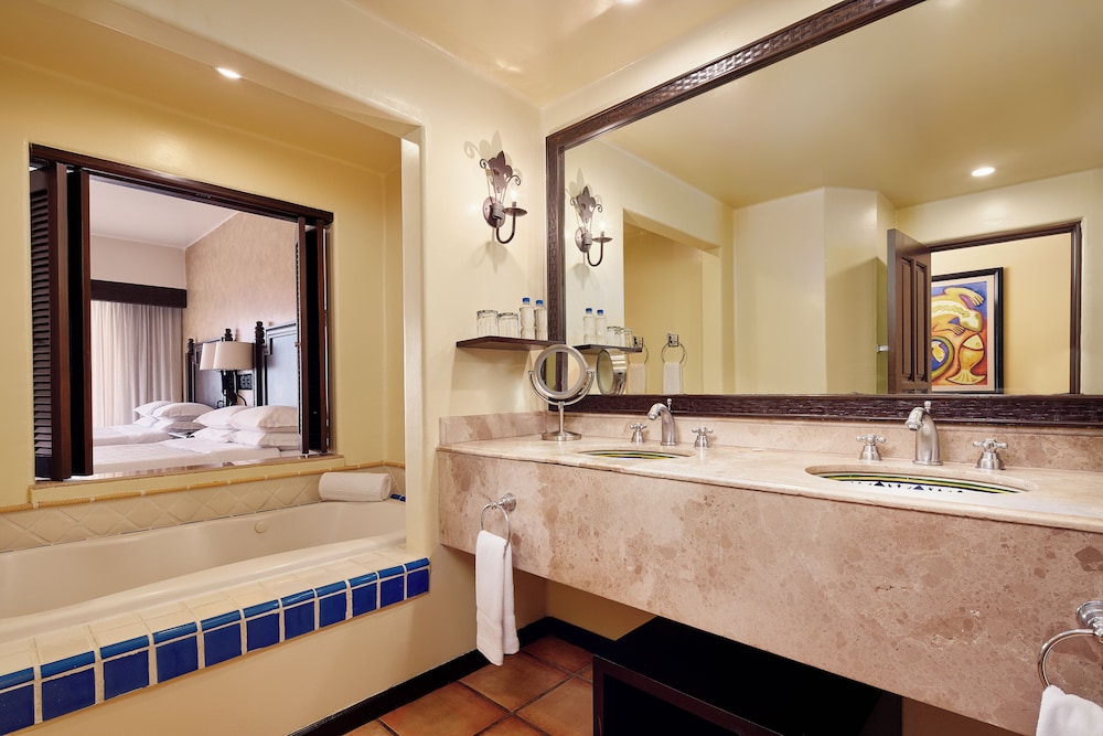 Centrally located to the marina and downtown Cabo. Great resort for golf and hanging at rhe pool. A very aafe reaort that requires two security check points to enter into the area that contains The Four Seasons, Hyatt, and Fiesta Americana.