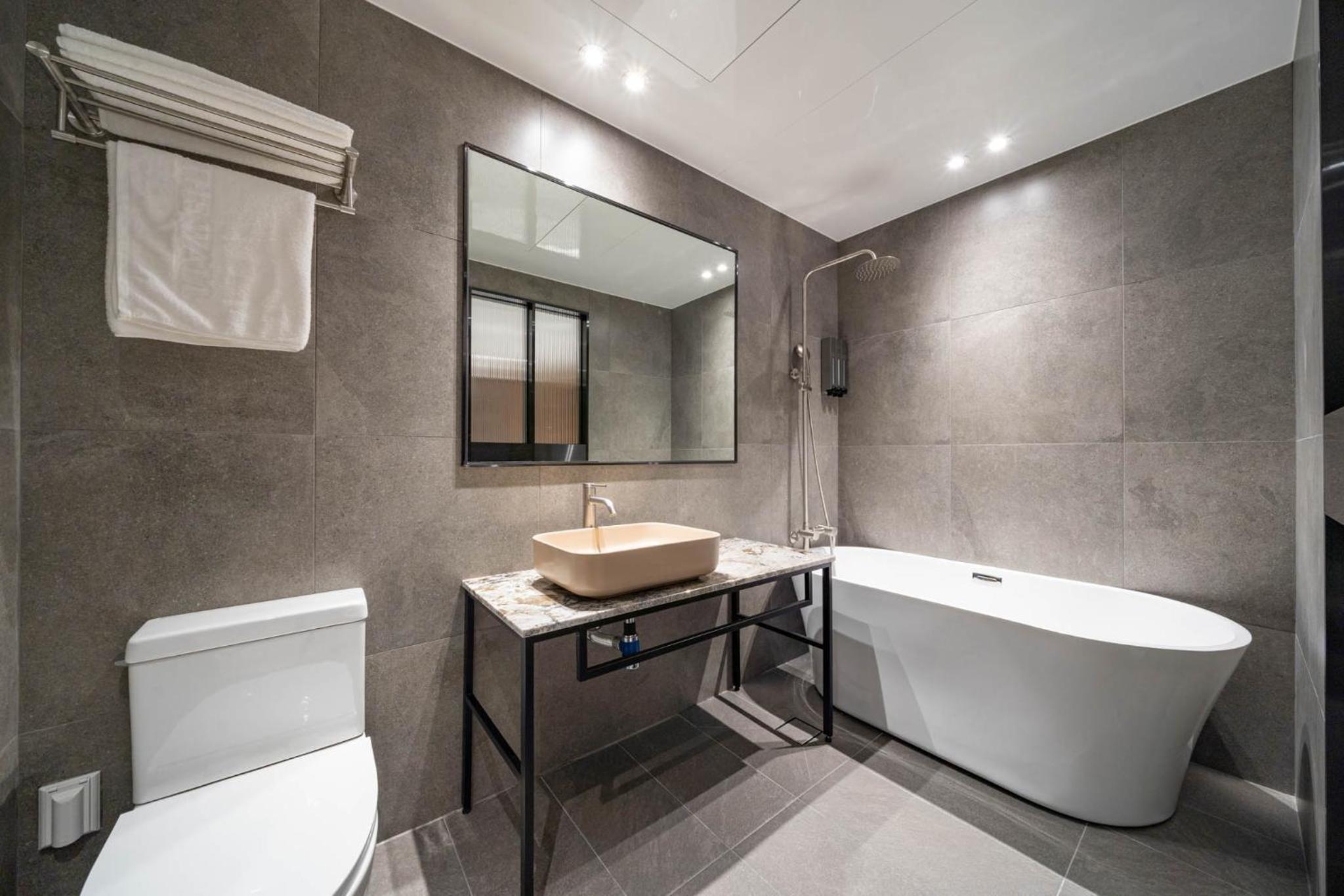 구축에 리모델링한 곳이라 복도나 엘리베이터가 굉장히 비좁은데, 어쨌든 깨끗하고, 큰 티비에, 스타일러까지 구비되어 있어서 편안한 숙박이 되어 만족스럽습니다