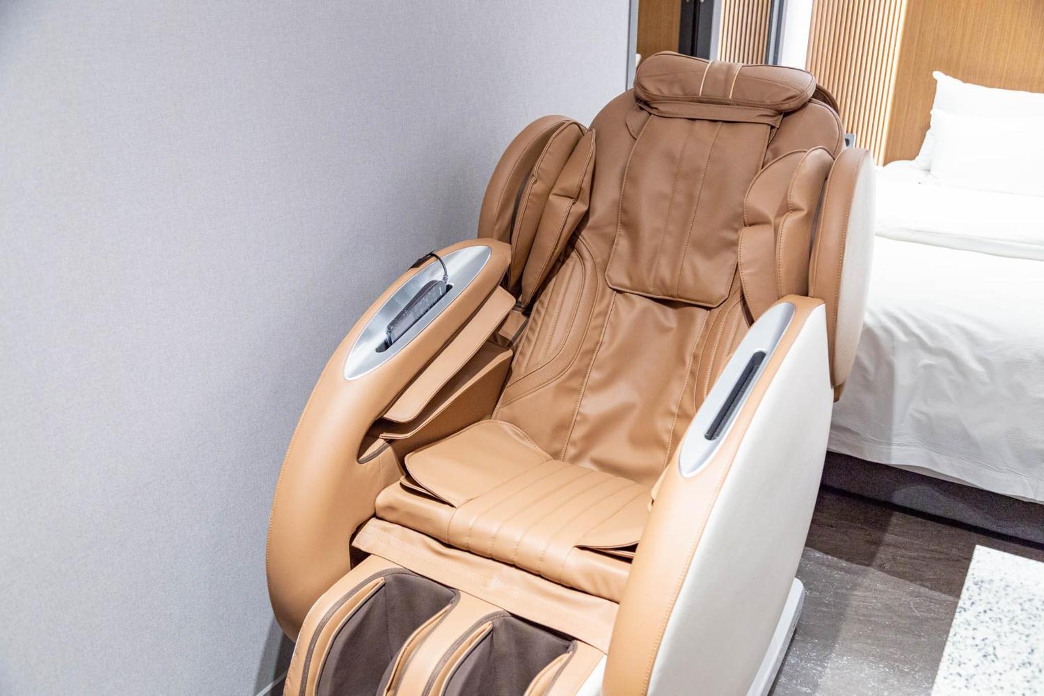 Friendly helpful staff, called taxis for me and came to room to show how to work aircon. Lots of unexpected extras in room, huge tv, massage chairs and fridge, kettle etc. comfortable bed.