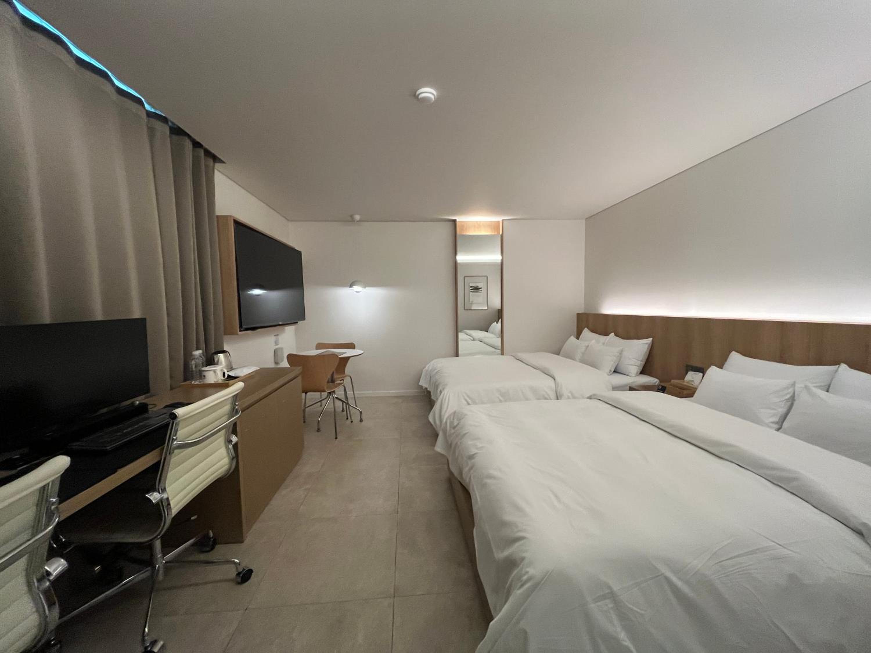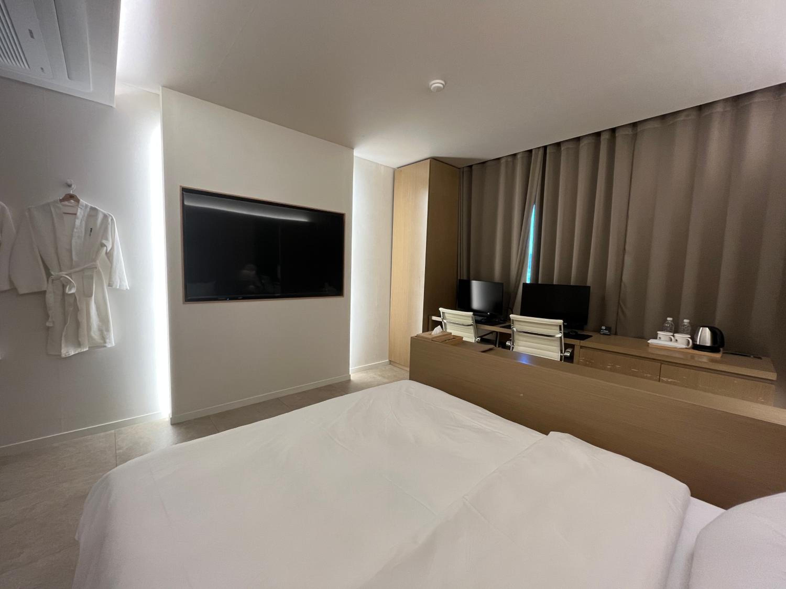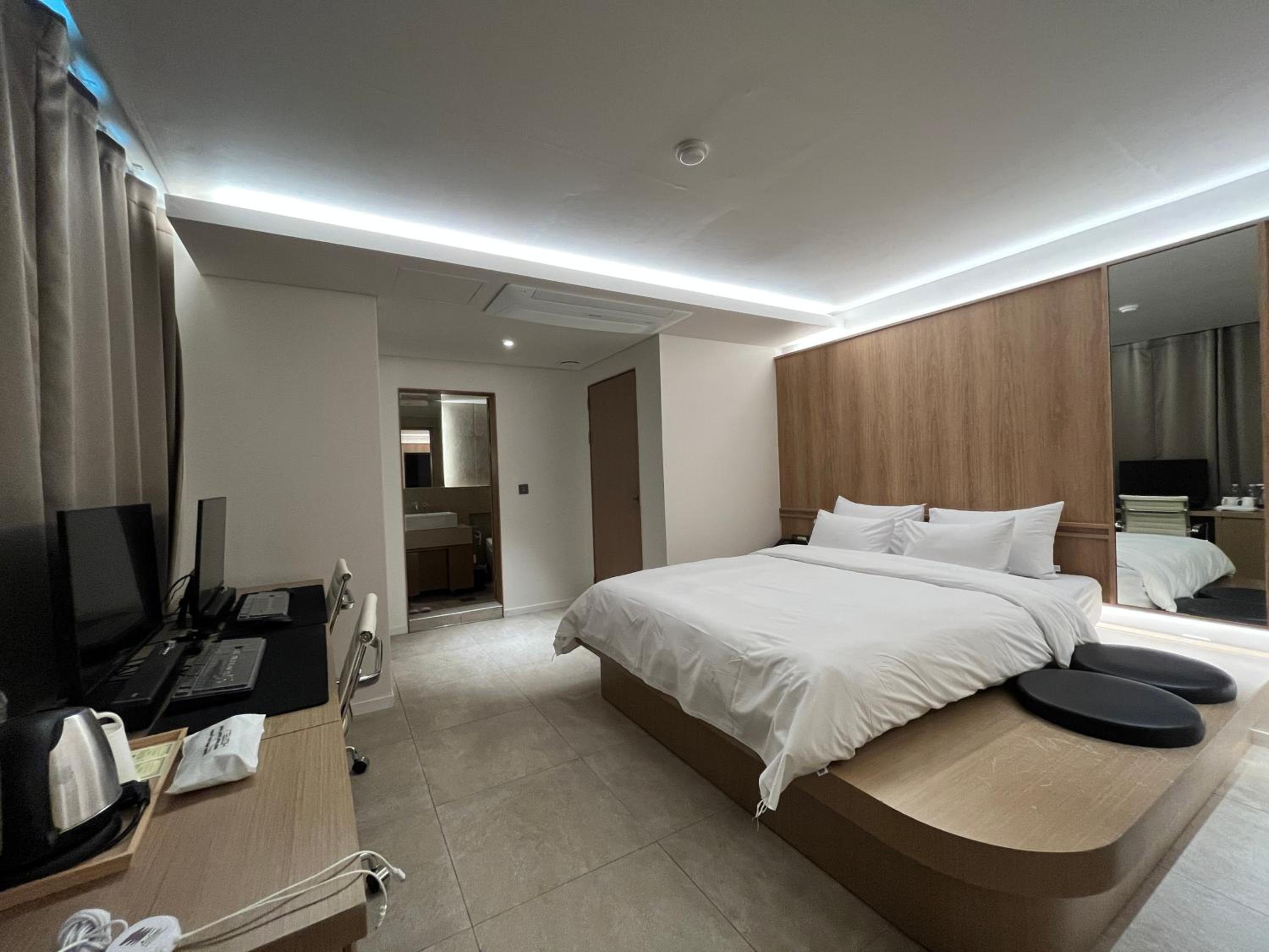 킨텍스에서 열린 행사에 참여하기 위해 급하게 고른 숙소인데 룸 컨디션이 청결하고 깔끔해서 좋았습니다. 머무르는 동안 매일 새벽에 나가 한밤중에야 들어왔는데, 청소도 꼼꼼하게 잘해주시고 주차도 대신 해주셔서 몸이 편했습니다. 예약한 방이 1인실이었기 때문에 욕실이 다소 협소했지만, 가격 대비 꽤 괜찮았습니다. 크기는 평범한 원룸 생각하시면 됩니다. 급히 오느라 충전기가 없었는데 방에 있어서 좋았네요. 숙박 목적이면 추천합니다. 칫솔 치약은 유료입니다. 직원 분도 친절하시고 좋습니다.
