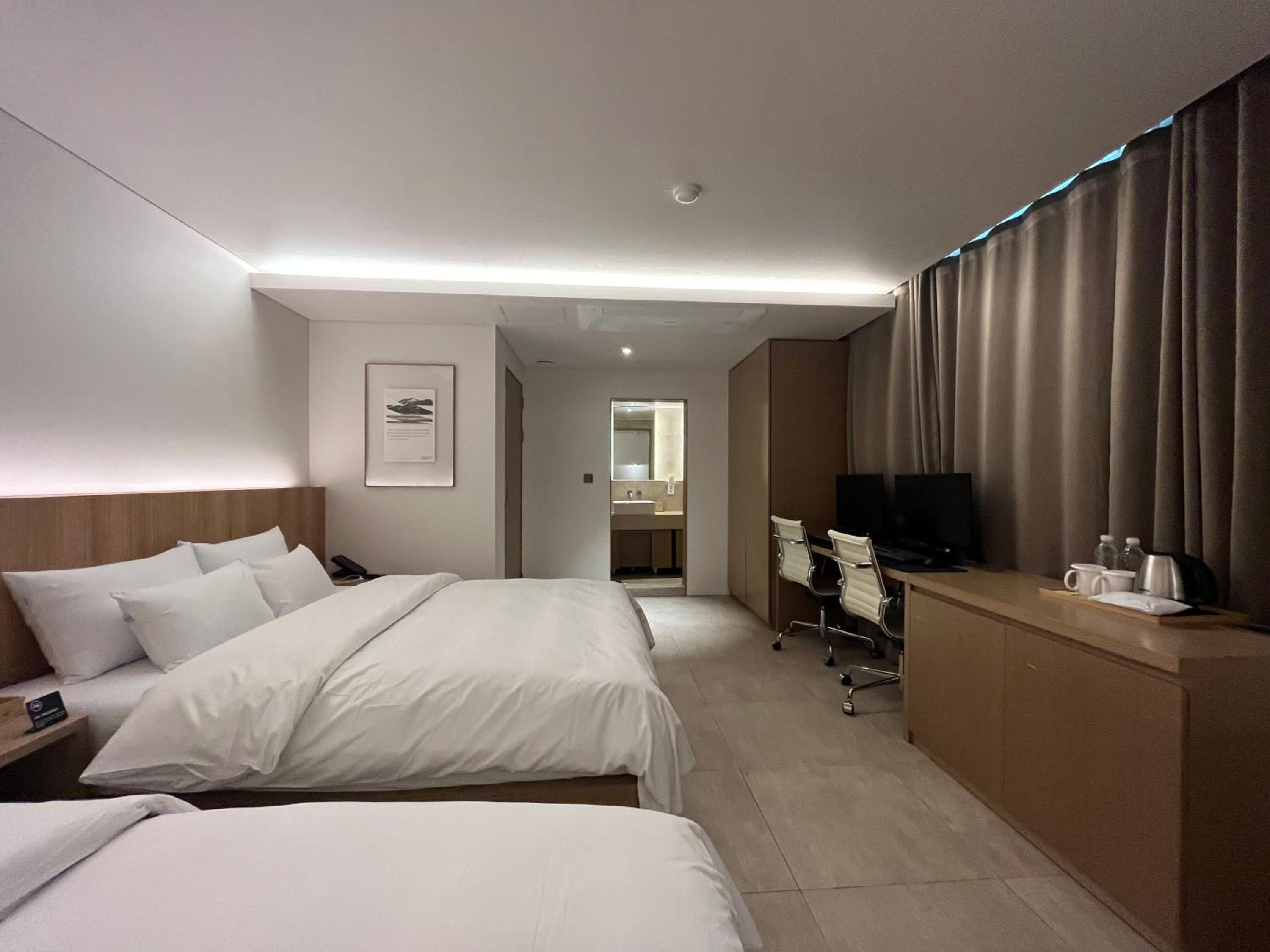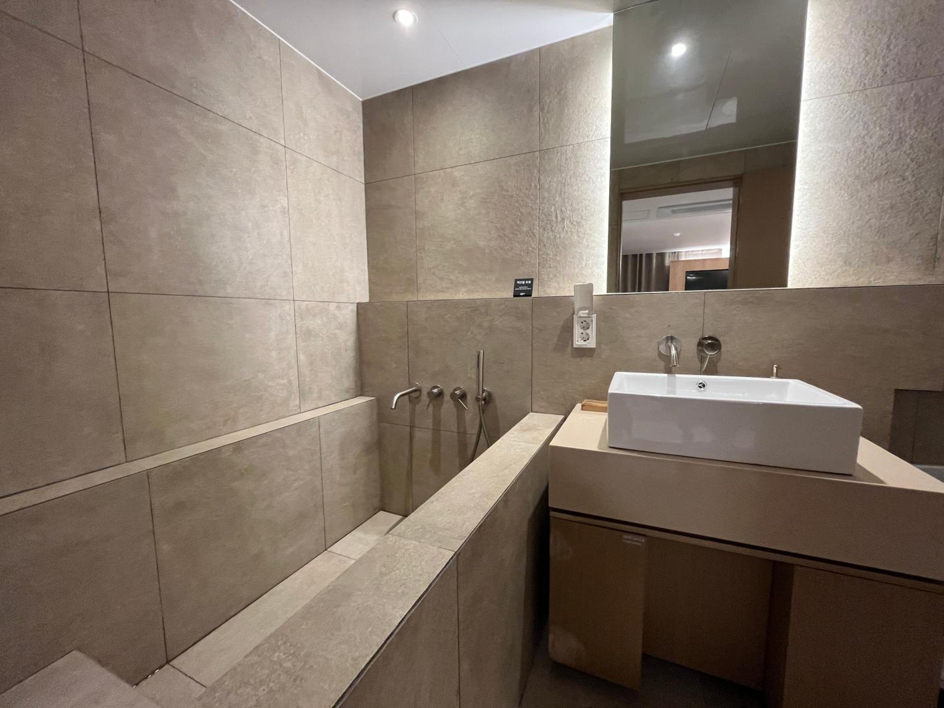 깨끗하고 조명이 밝아서 가족과 숙박하기 좋았어요. 욕조가 넓고, 스타일러가 구비되어 있어 좋았습니다. :)