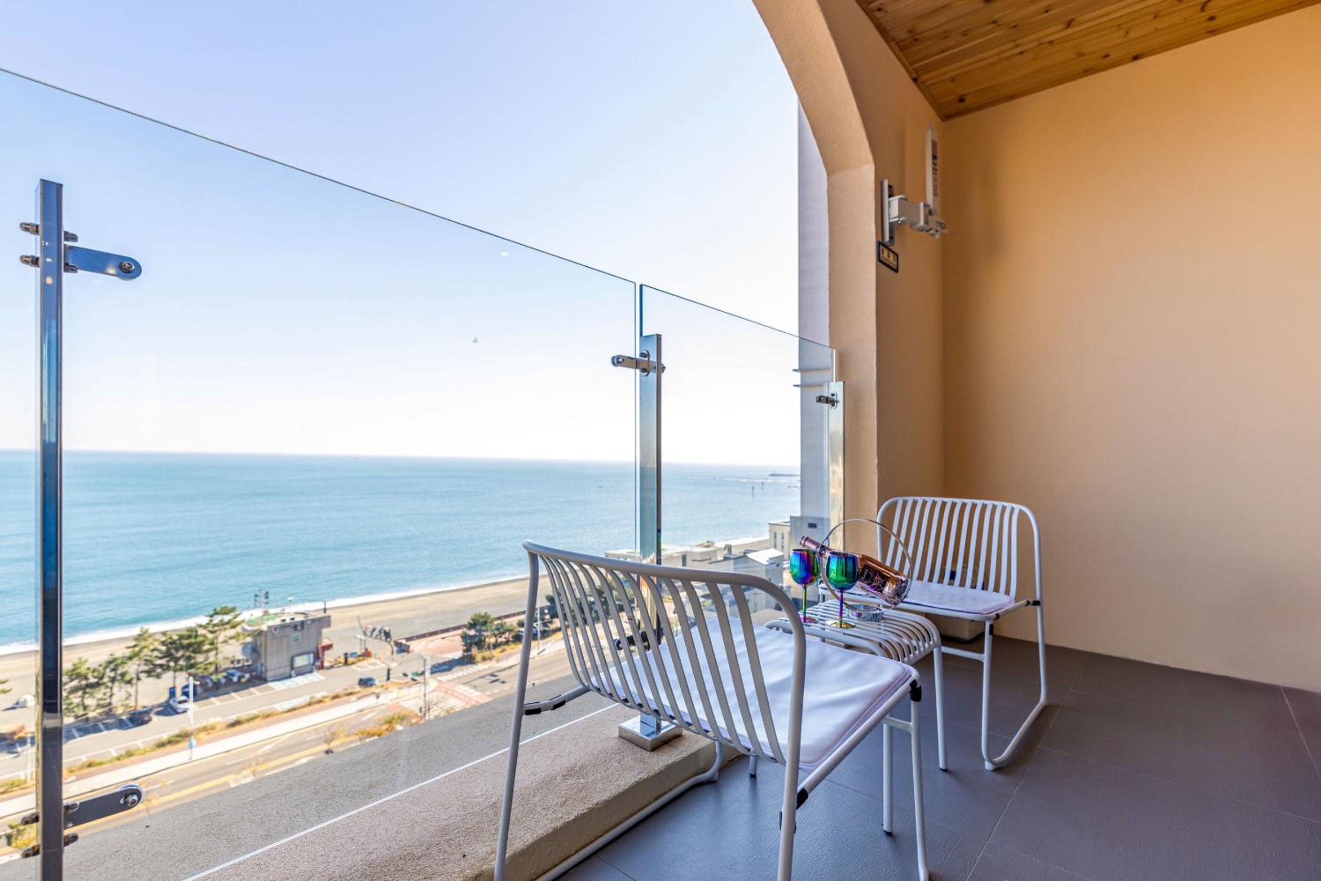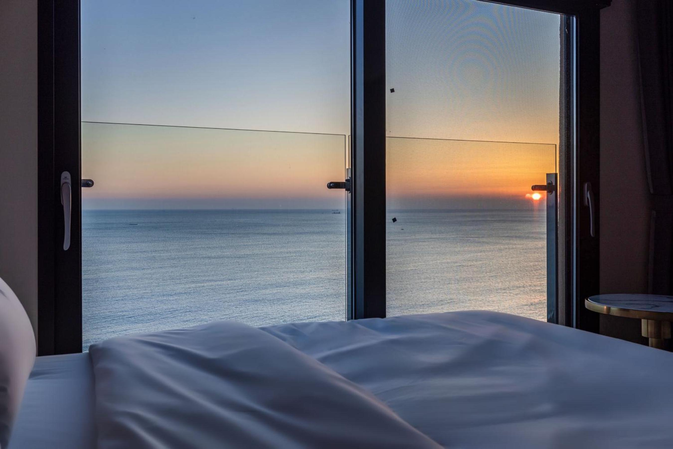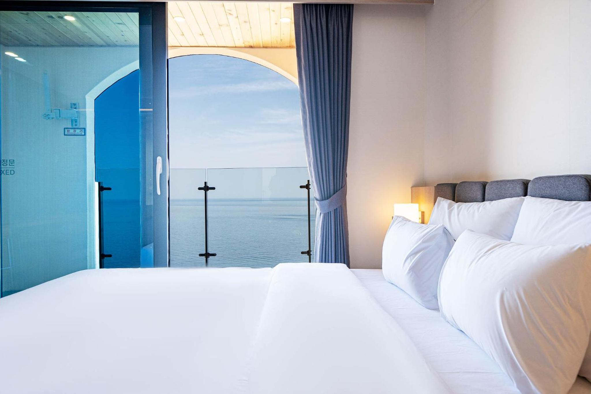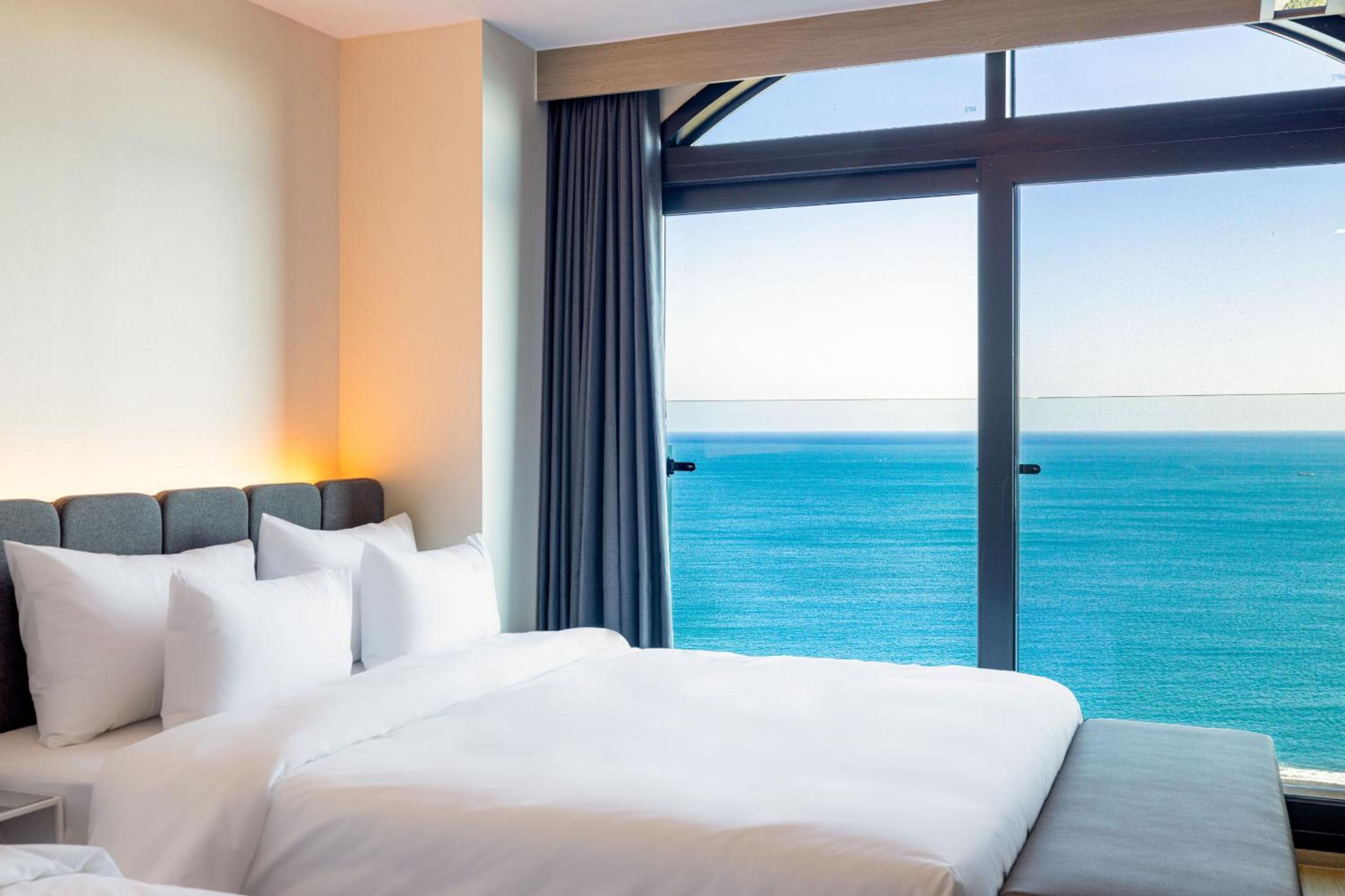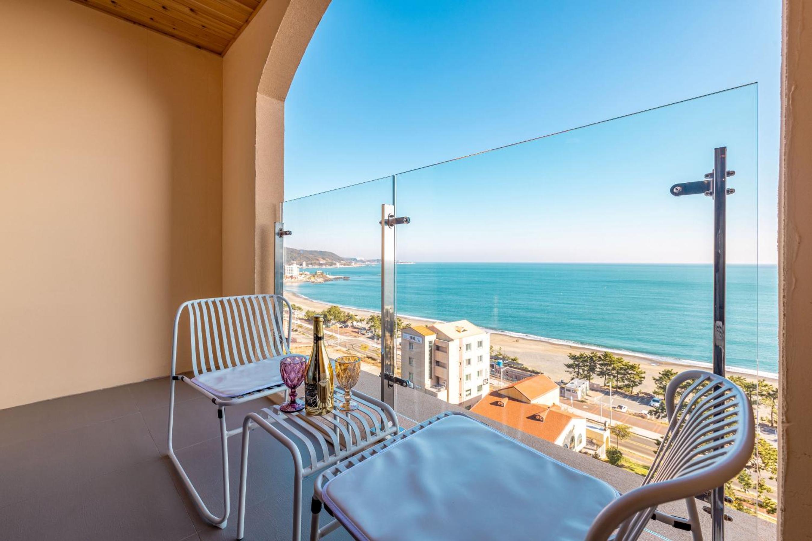 친절하고, 깨끗함. 6층 정도도 뷰가 좋음. 무료 조식은 기대 이상 단, 한국인에게 적당함. 침대가 킹 사이즈. 테라스가 있어 좋음. 바로 앞이 해변. 몽돌 해안이라 파도 소리가 독특함. 객실에서 보면 테라스 난간과 해안선이 수평이라 바다 뷰가 그림임.