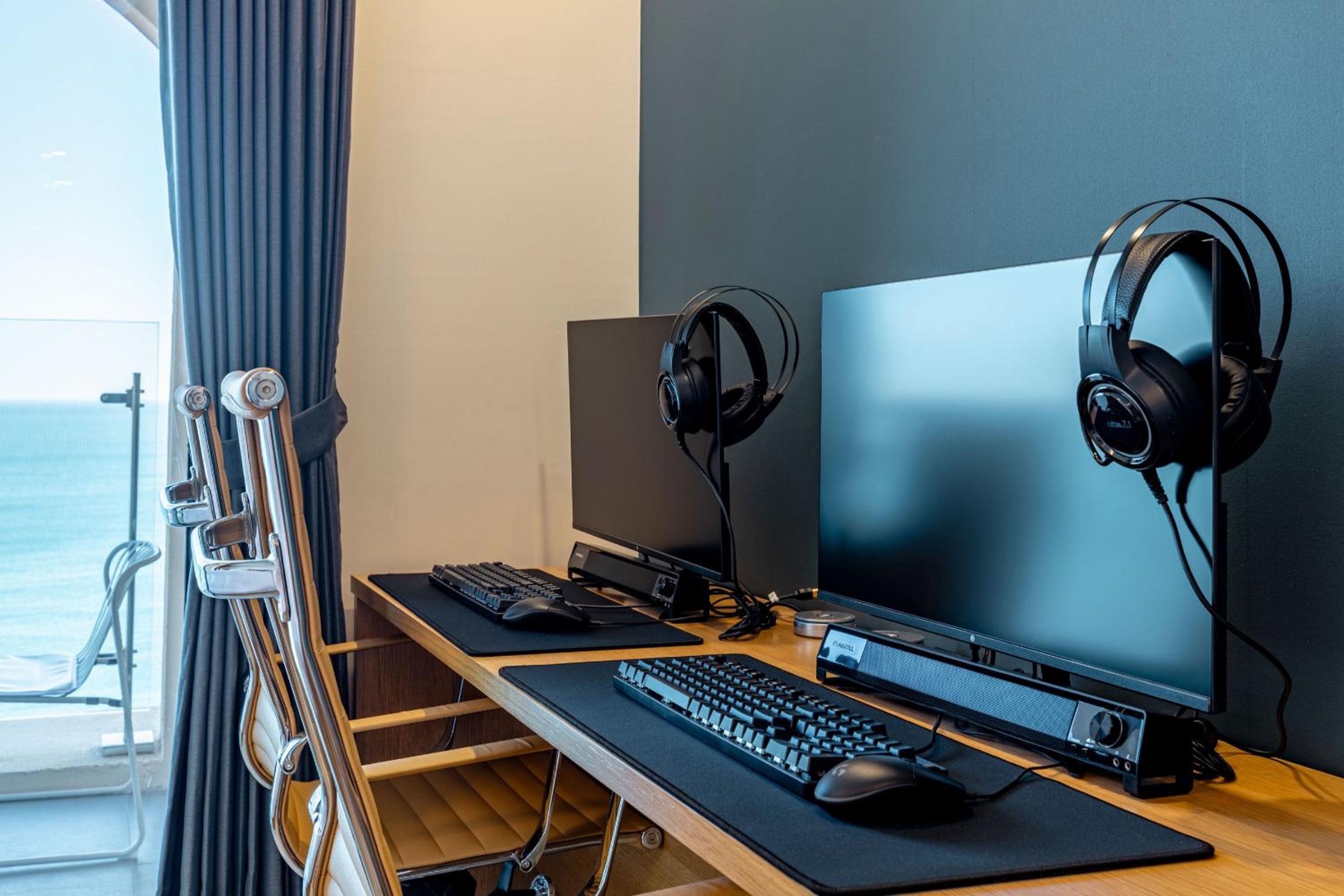 I hadn't realized there would be a gaming computer in the room - that was amazing! And the TV screen is massive and great for watching TV shows, and it even rotates a bit.
