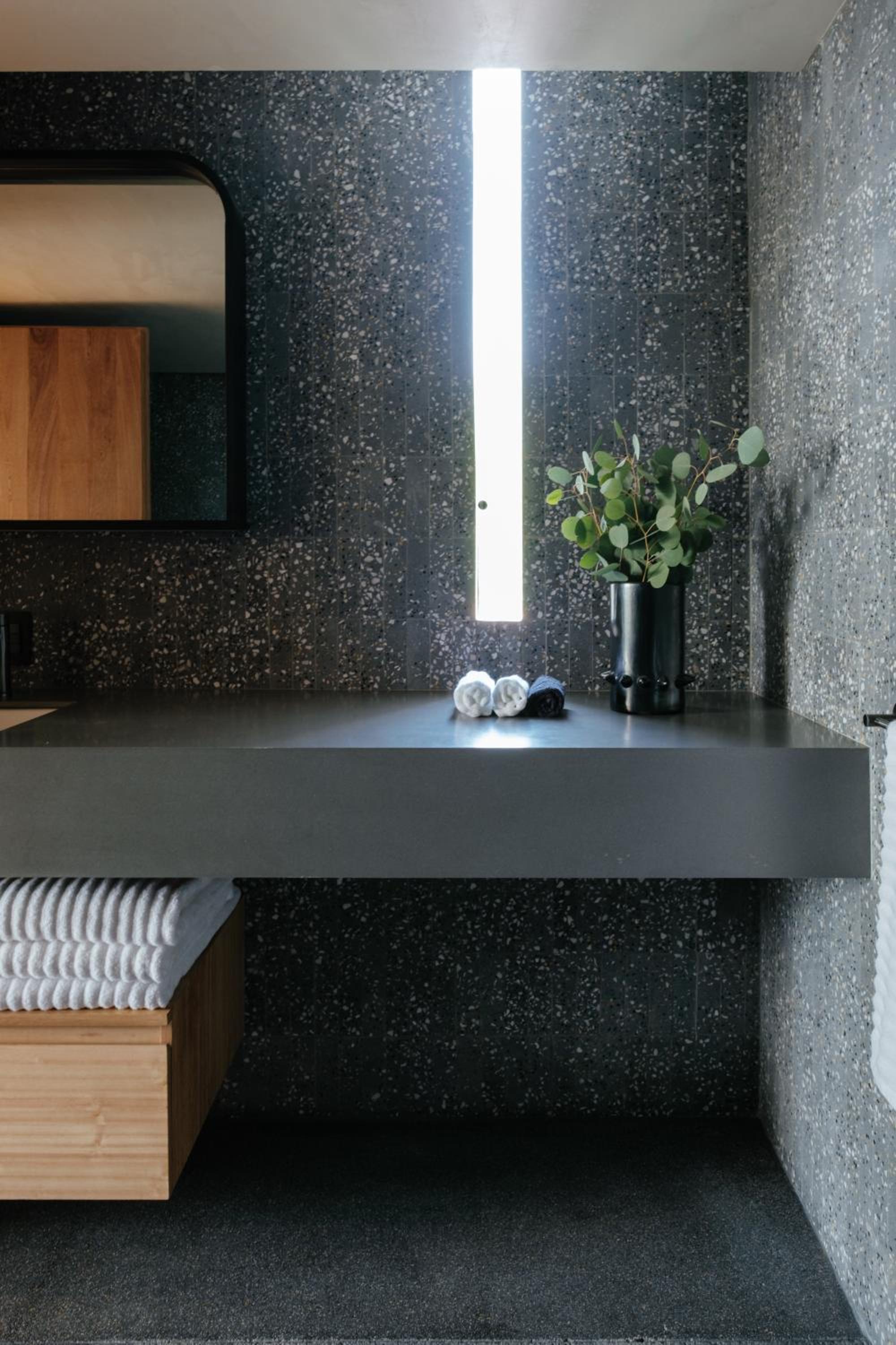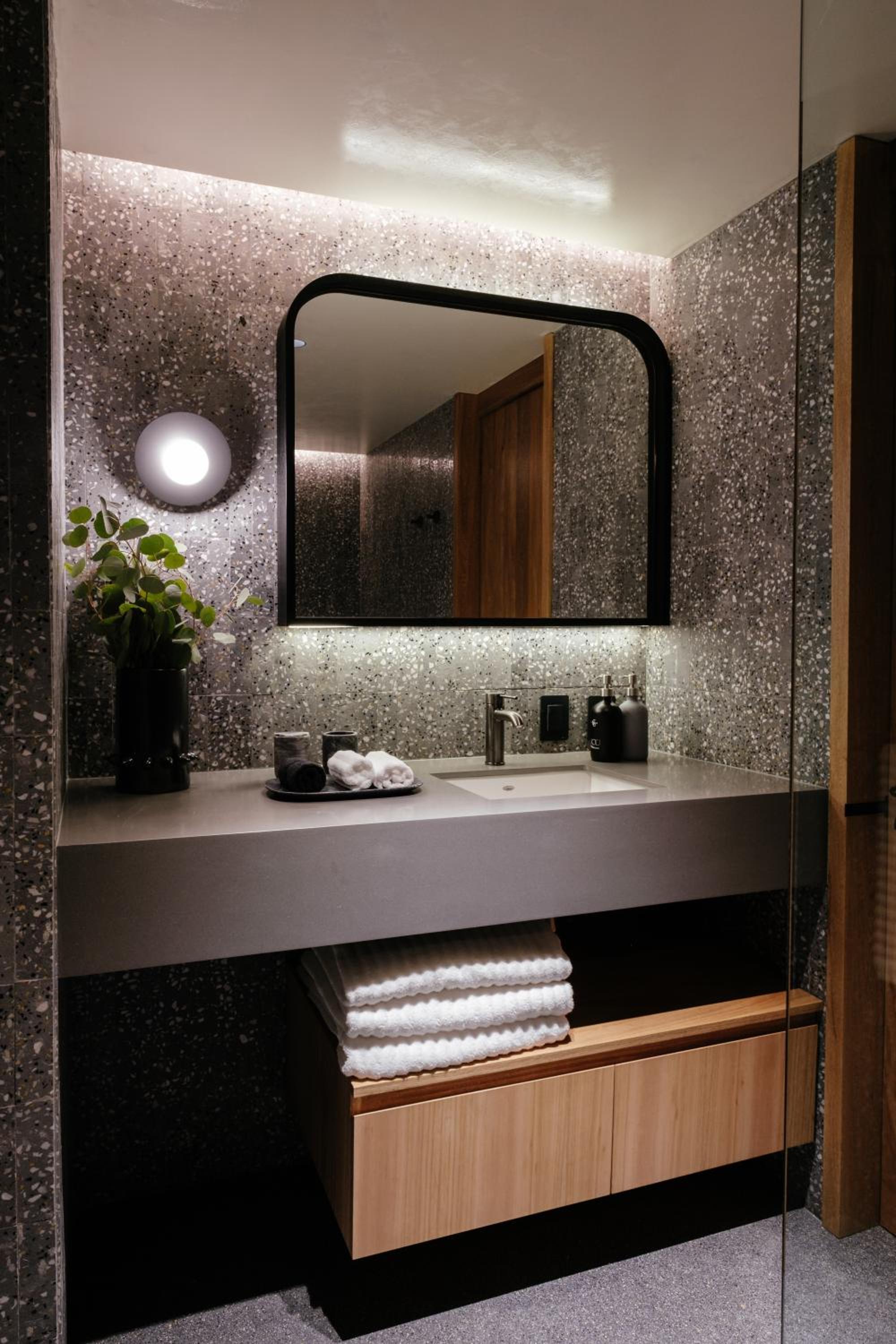Lighting in the bathroom could be brighter.