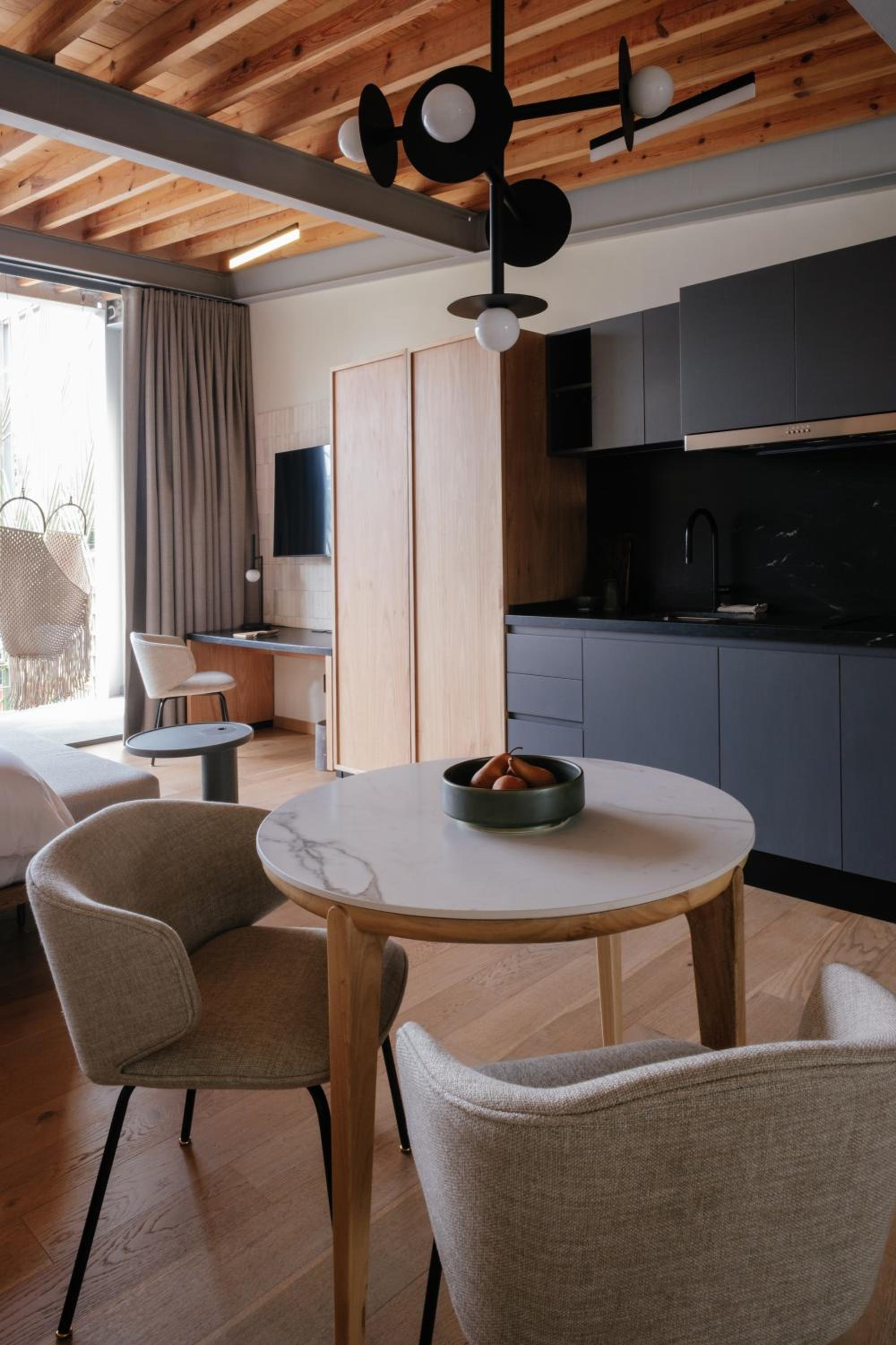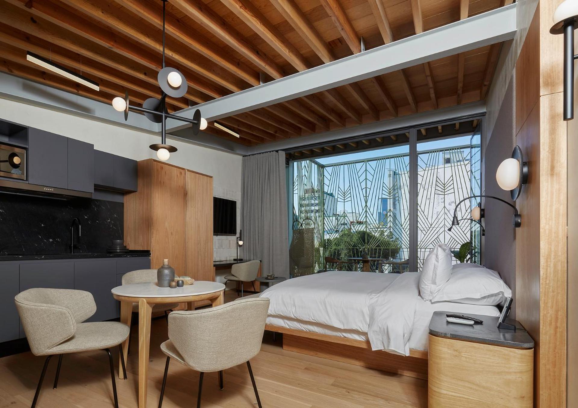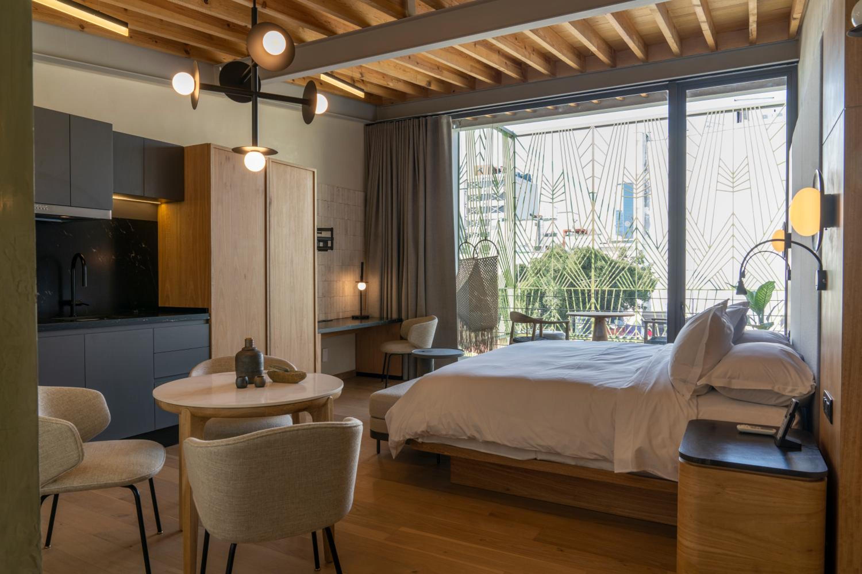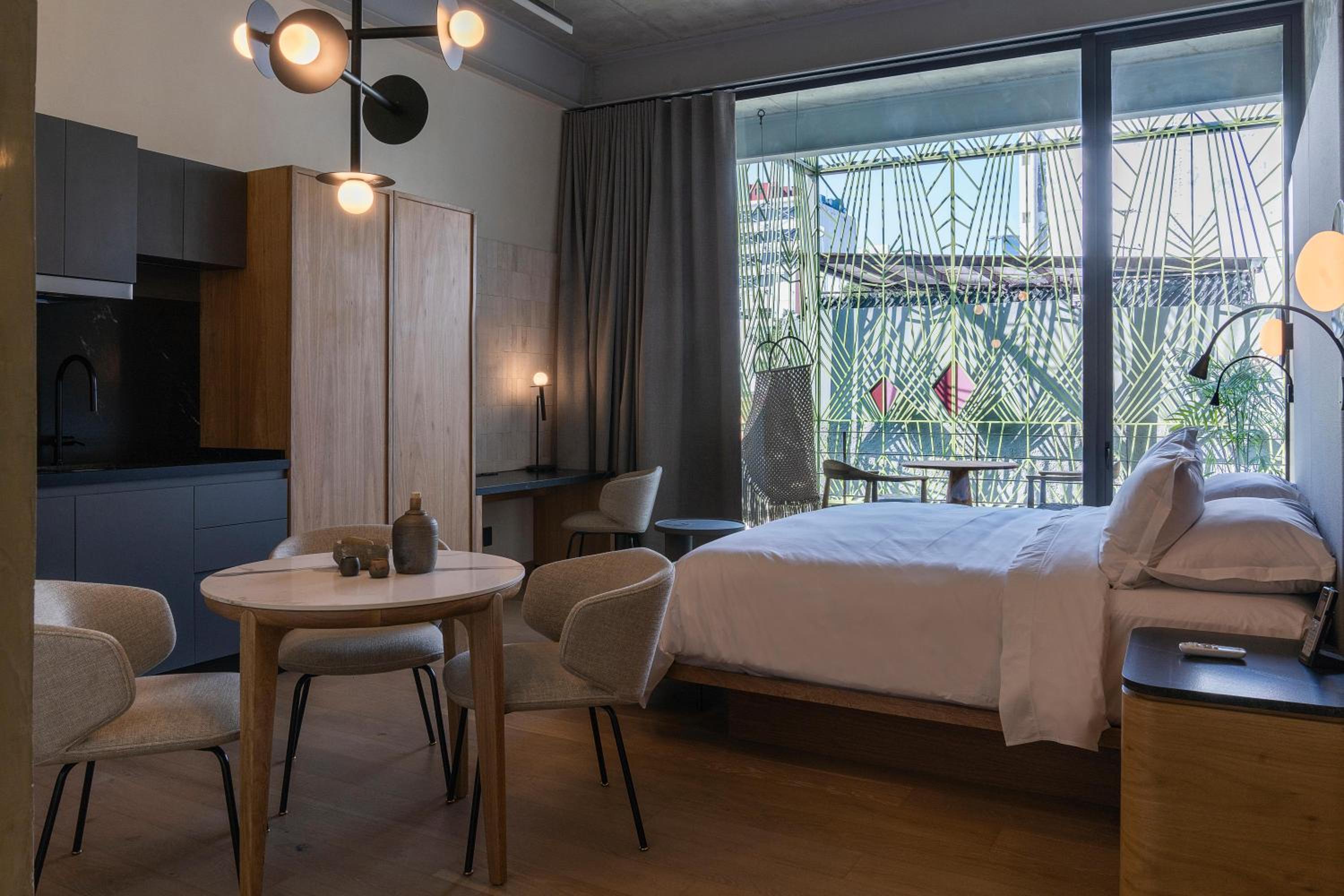 Colima 71 Art - Community - Hotel in Mexico City offers 5-star luxury with air-conditioned rooms, kitchenettes, and city views. Some units even feature balconies for a touch of elegance. Enjoy modern amenities like flat-screen TVs, free WiFi, and a 24-hour front desk for ultimate convenience.